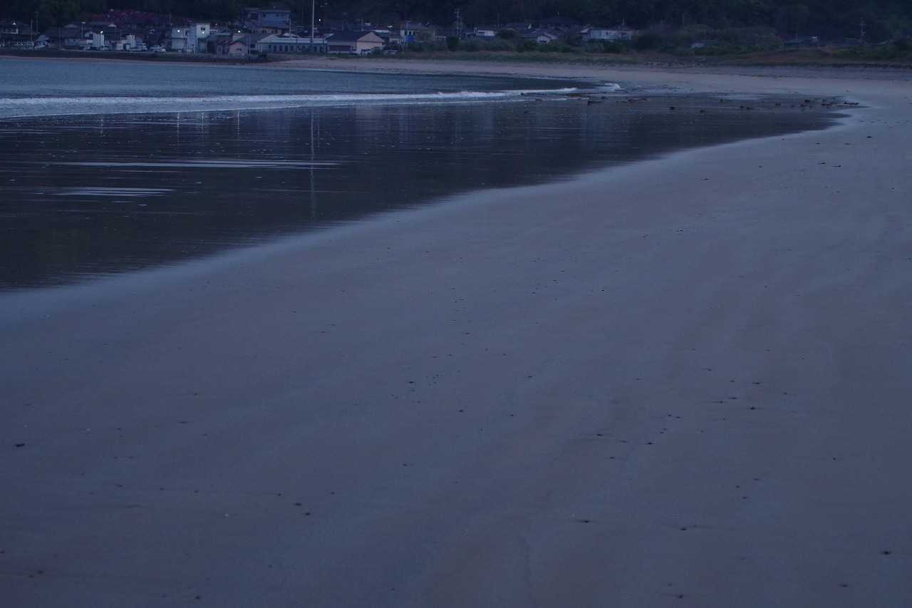17日。糸島市野北の浜に海に沈む月を見に行った。