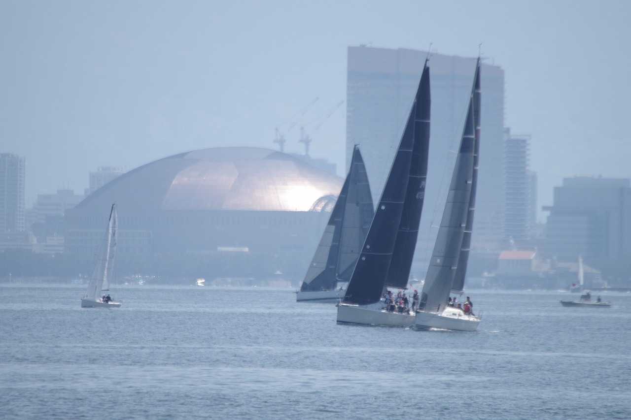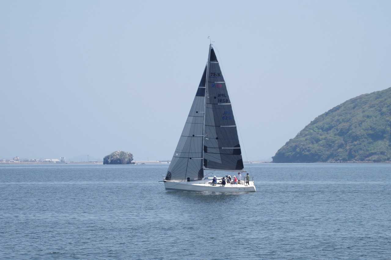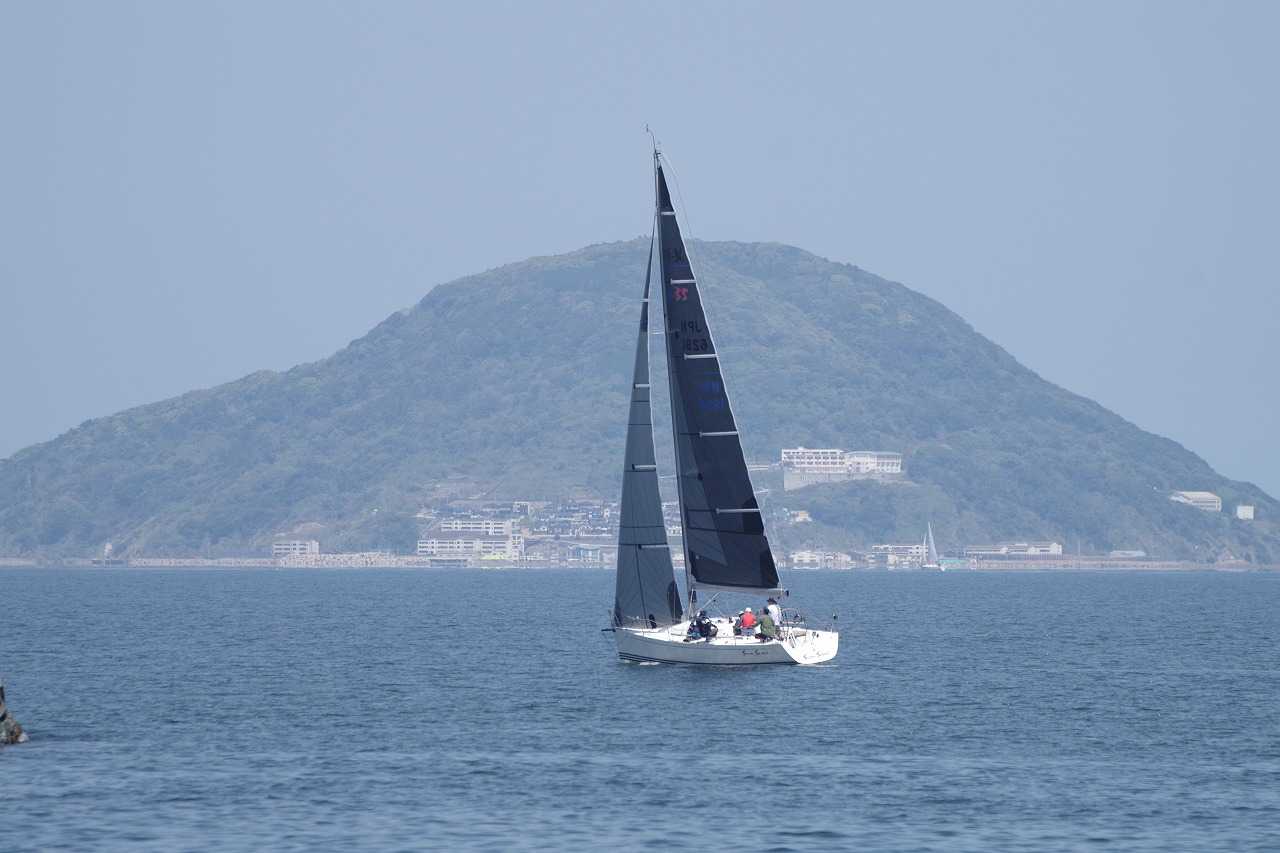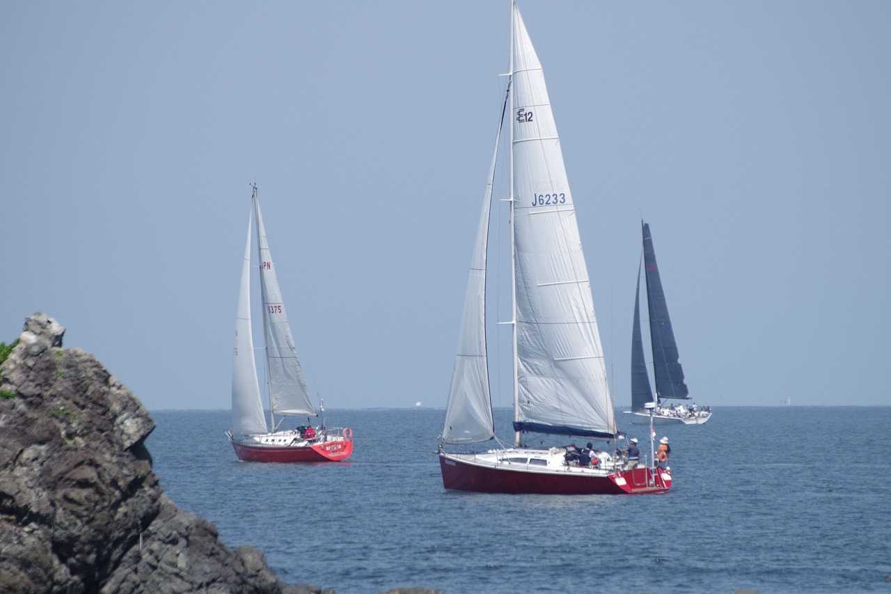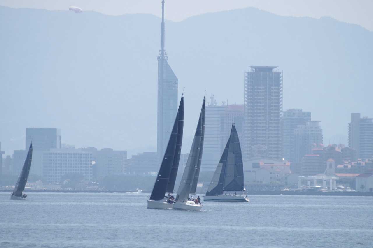 今津の海岸から東を見る。外海ヨットレース。
