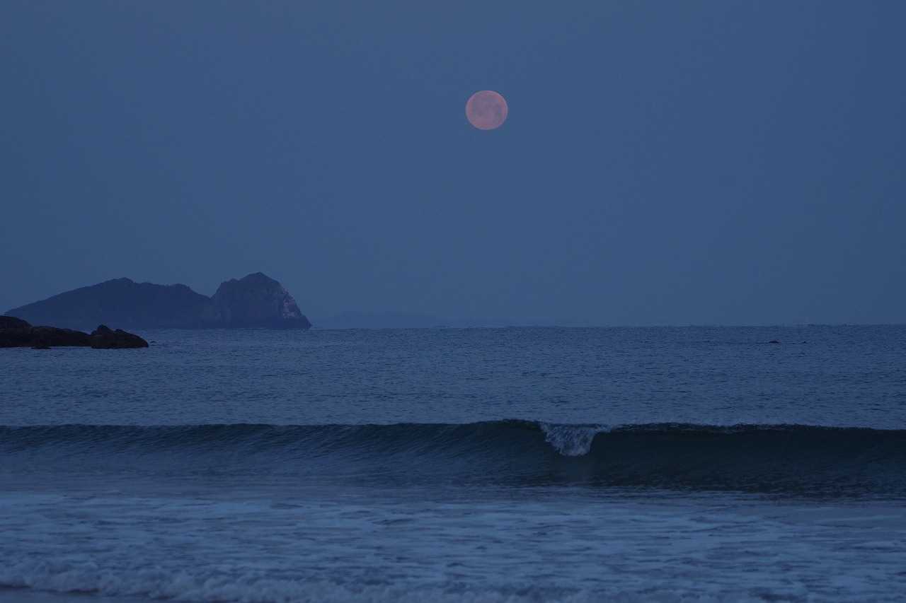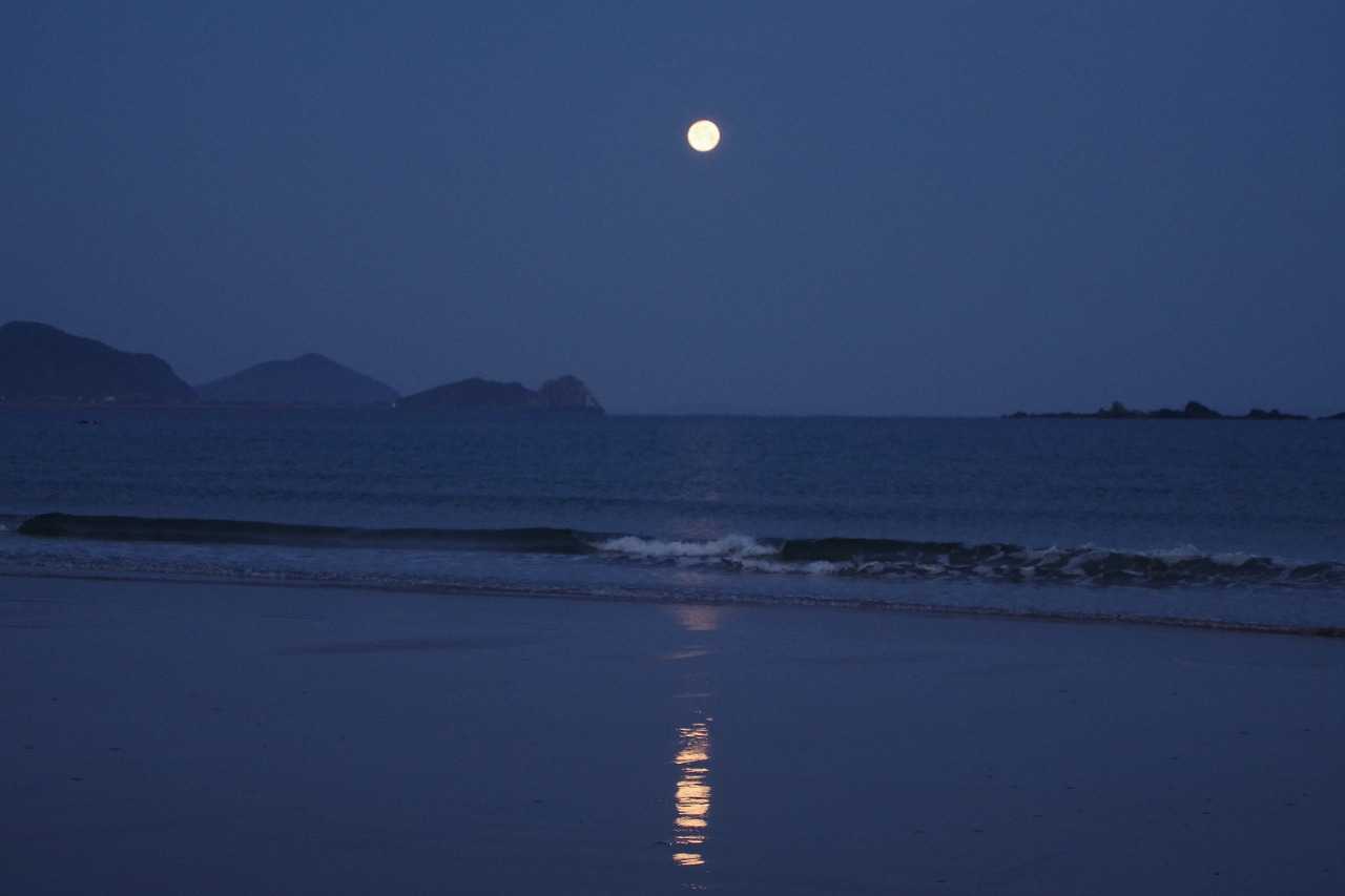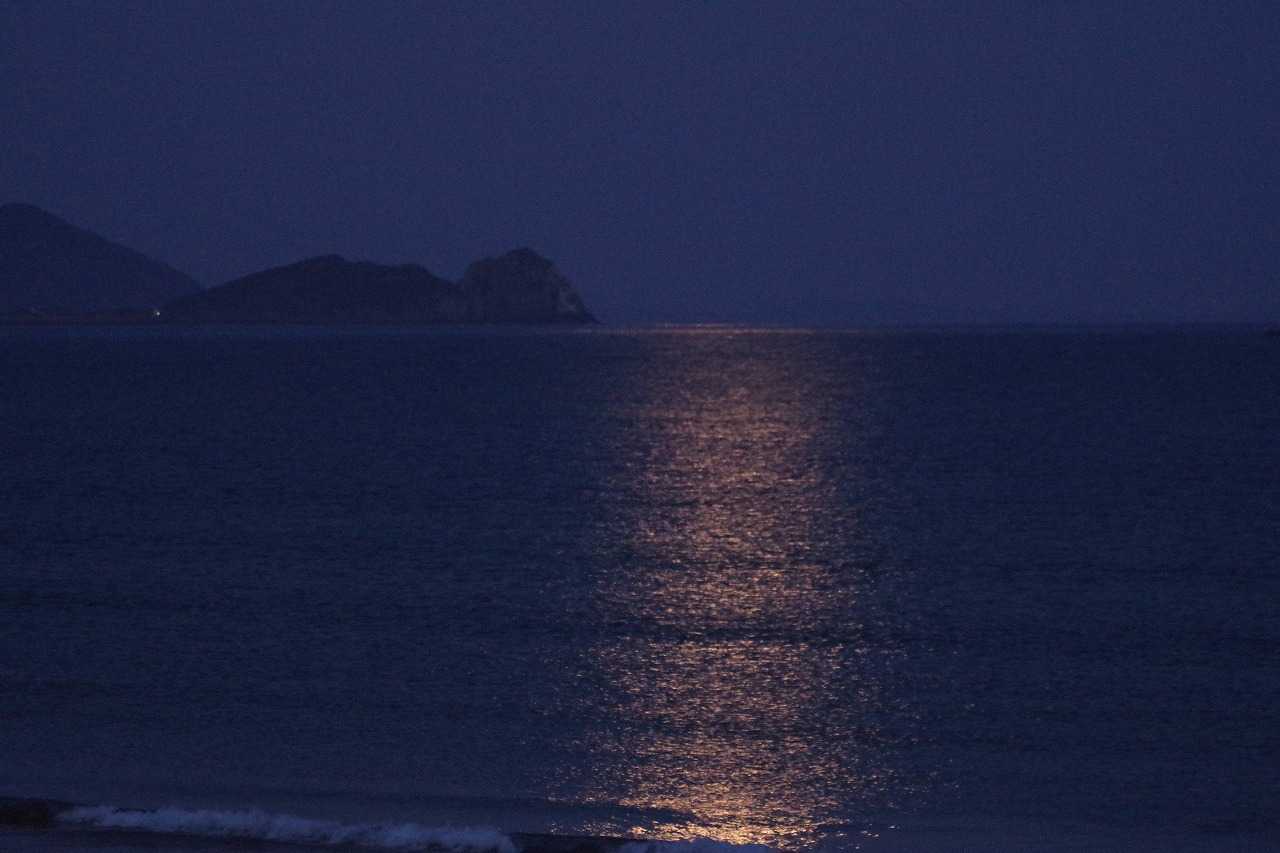 水平線よりまだ高い位置で満月は次第に影が薄くなり、海に没する前に見えなくなった。