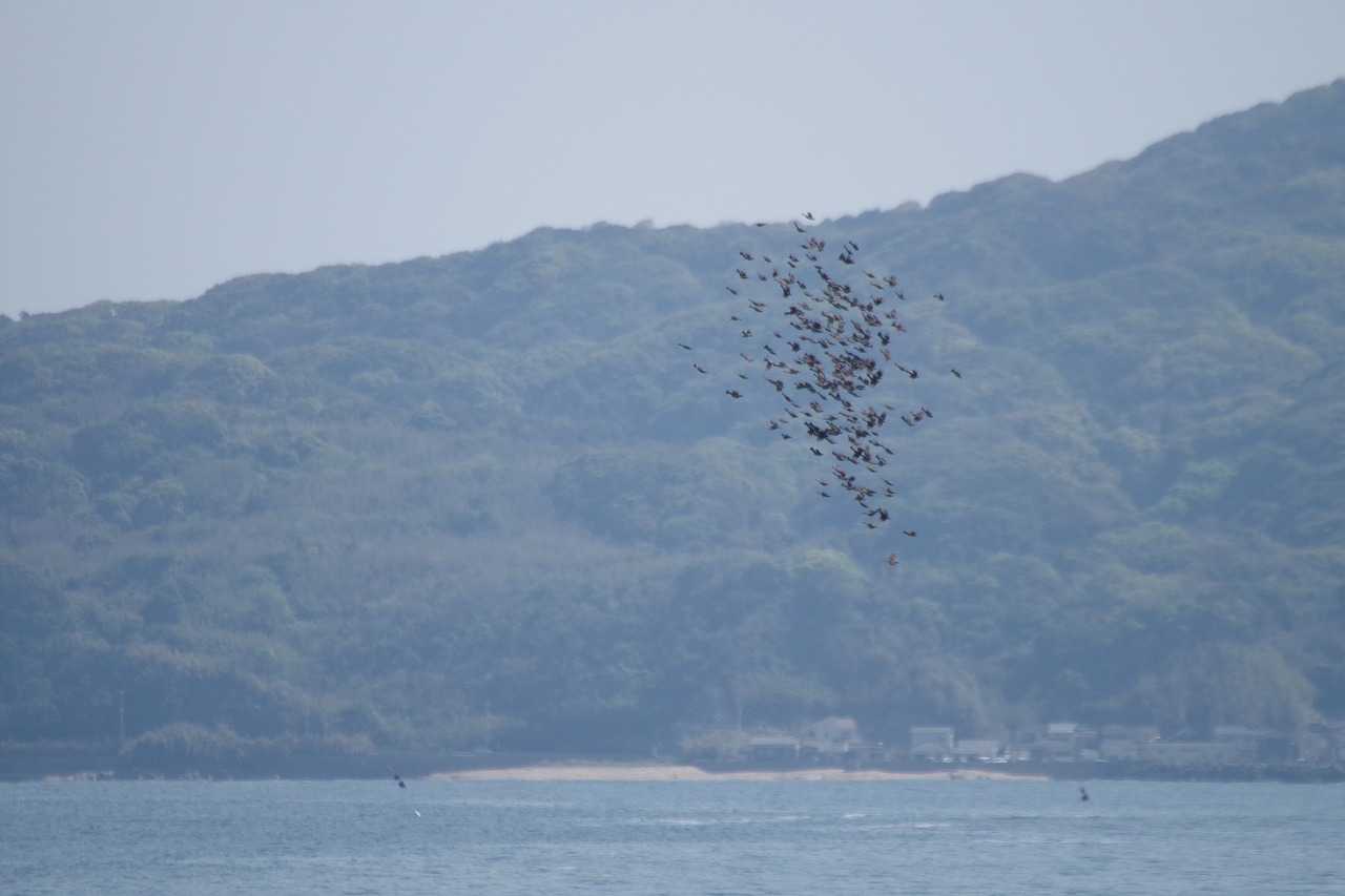 ヒヨドリの群は規模が小さく、やがてハヤブサの襲撃に合うことも無く能古島へ渡って行った。