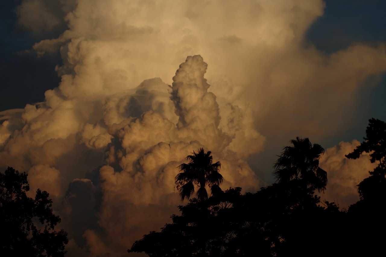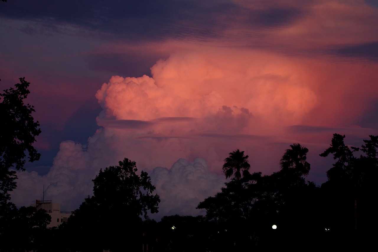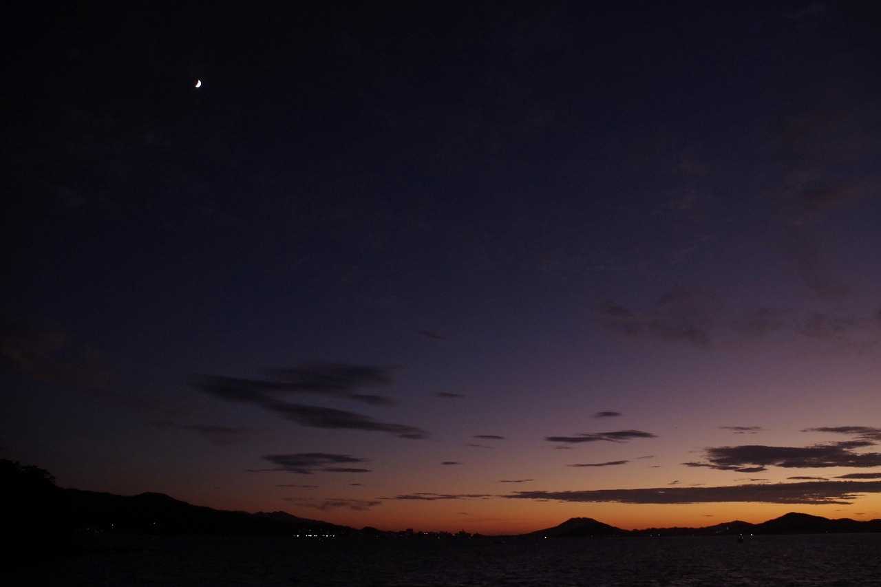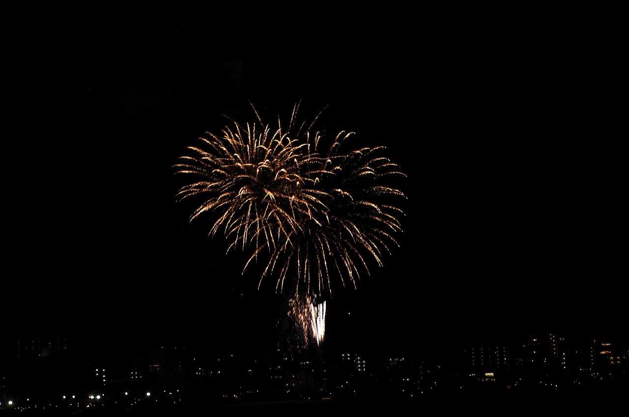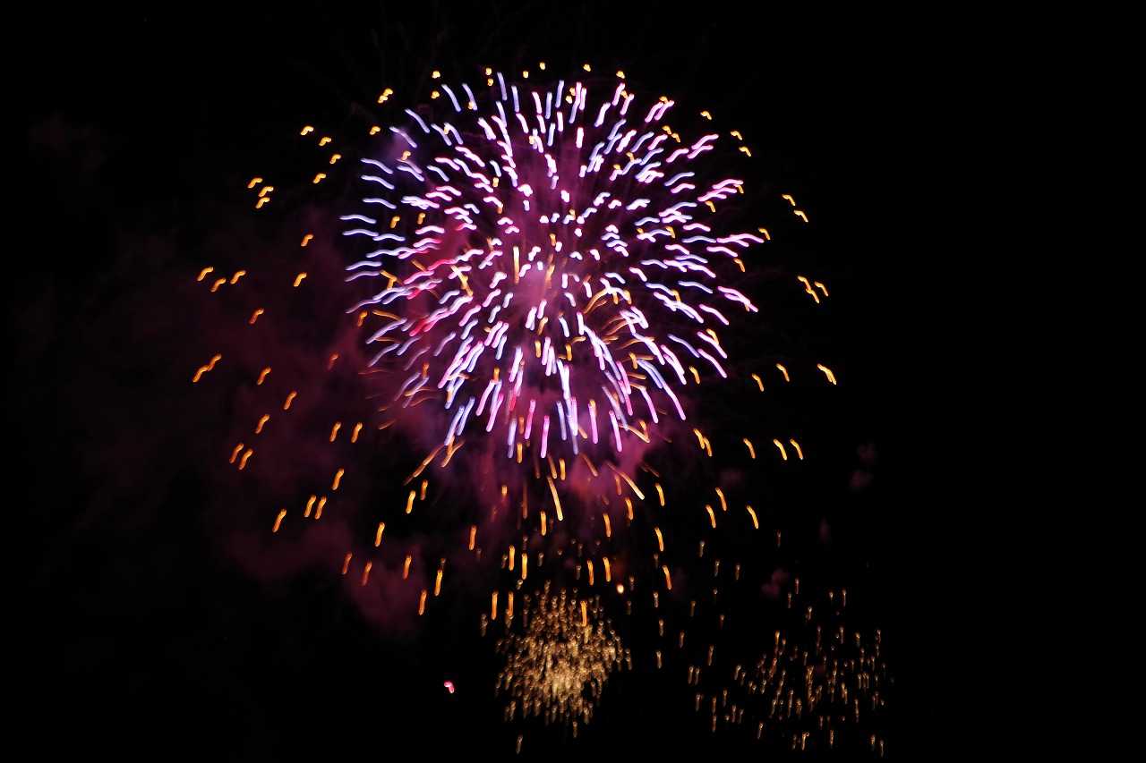 夕方小戸公園へ夕方の空を見に行った。夏は夕焼雲が一番きれいになる。おまけに長垂れ海岸で打ち上げ花火があった。花火撮影に必携の三脚が無かったので、長時間露光が出来ず花火らしくない写真になった。