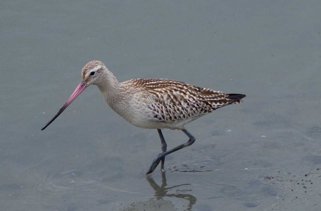 瑞梅寺川下流今津湾でオオソリハシシギの幼鳥が1羽いた。