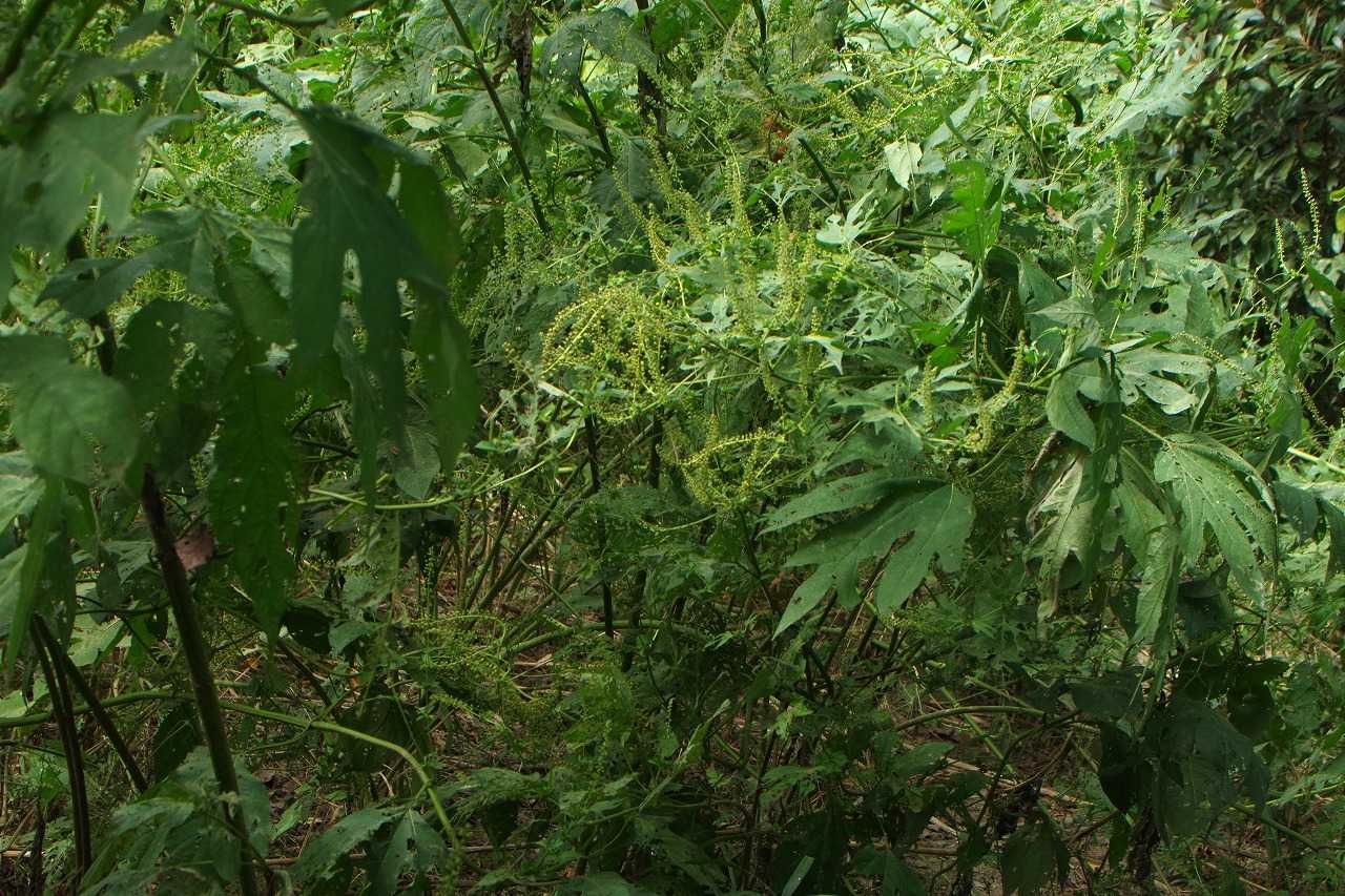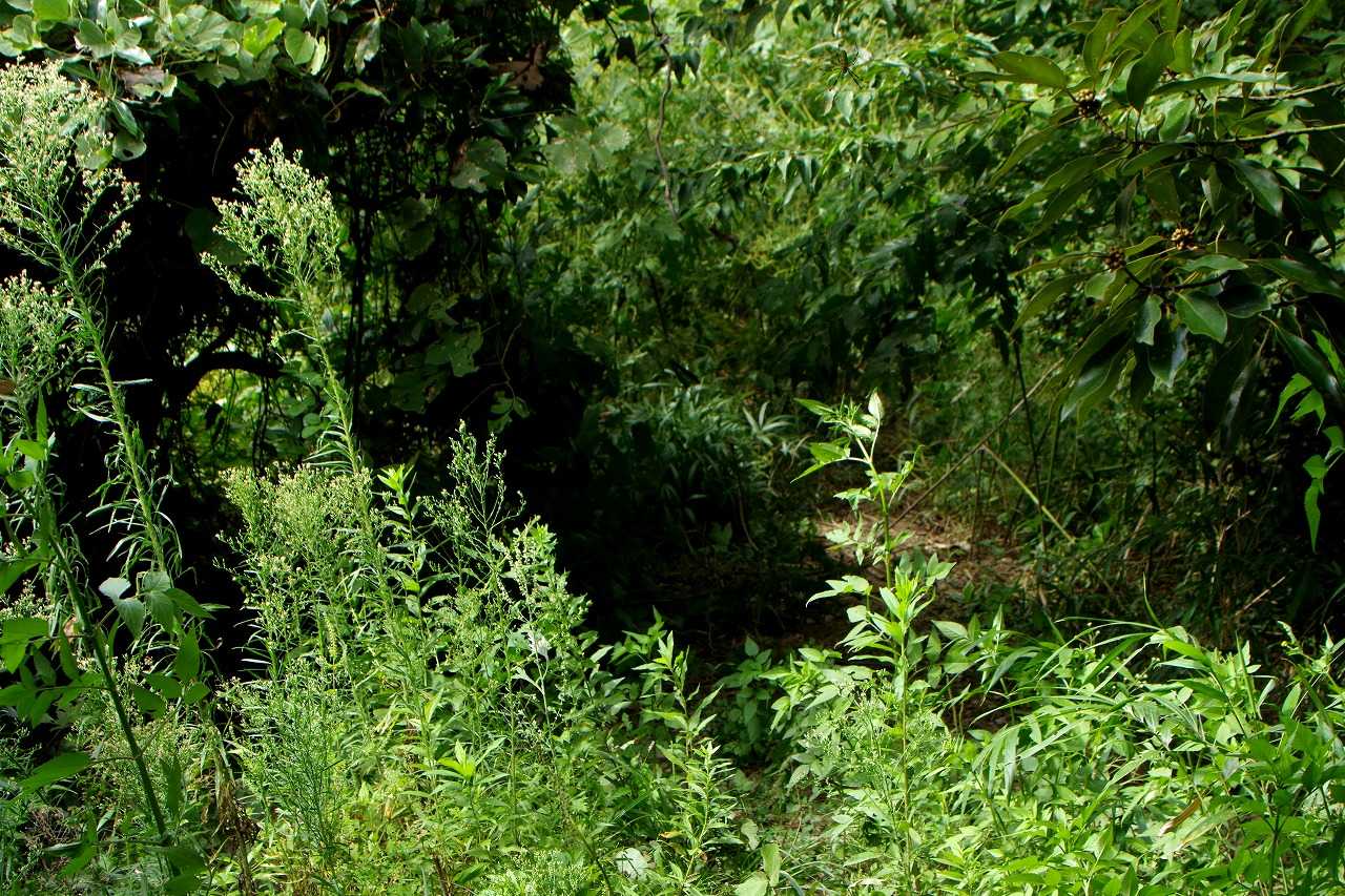 土の道はイノシシが掘り起こし、柔らかくなった土にオオブタクサやセイタカアワダチソウなどが繁茂し道が道でなくなっていた。