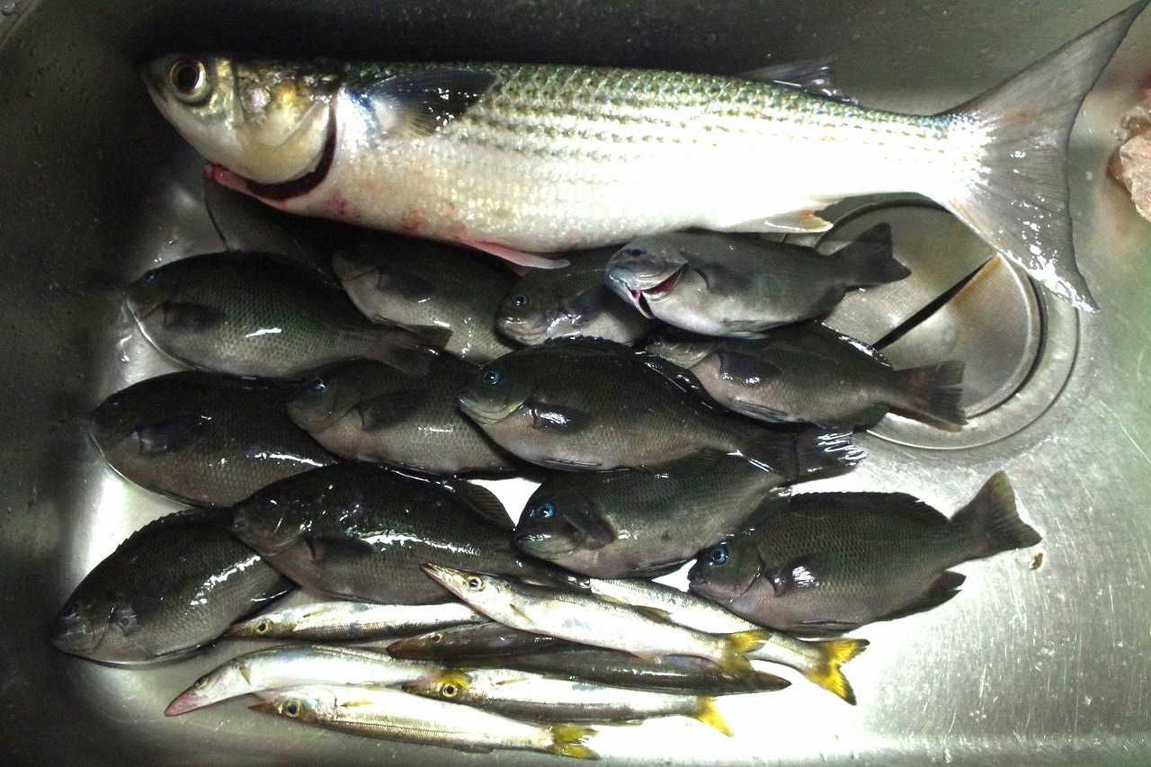 やっとボラを釣った。例年に比べて卵巣の発達が見られない。