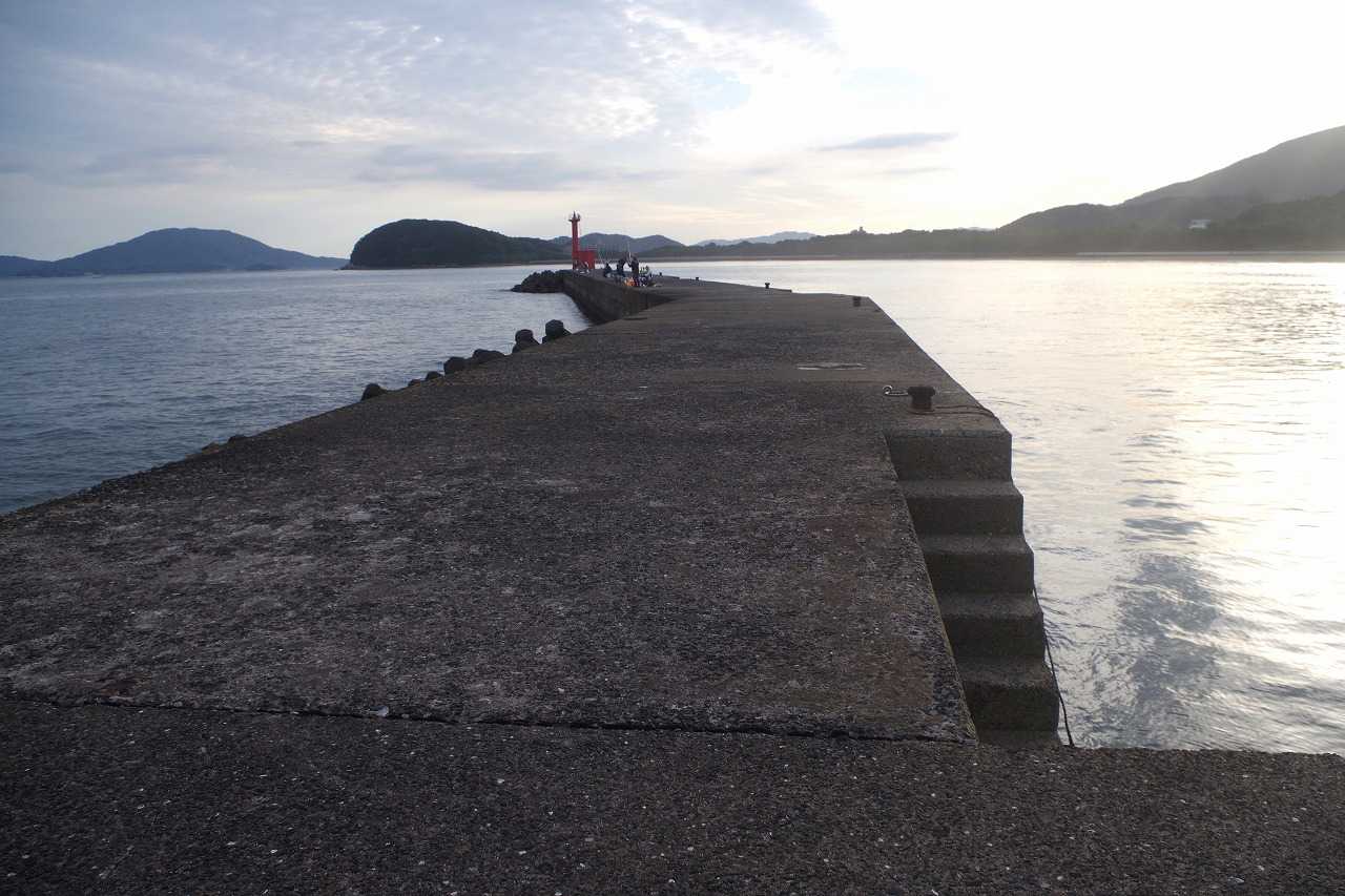 防波堤は長く、先端近くの50mぐらいはテトラが無く平場で、ここで釣ることにした。