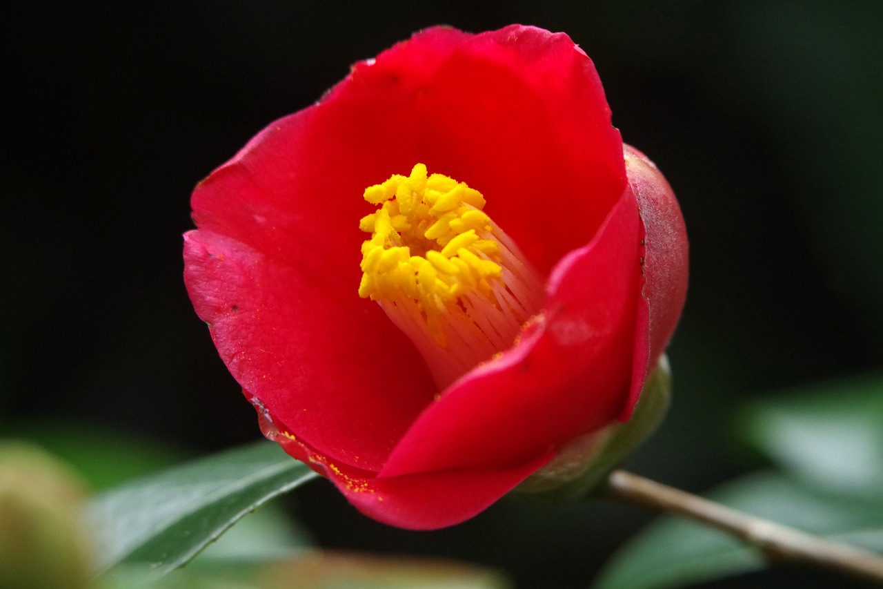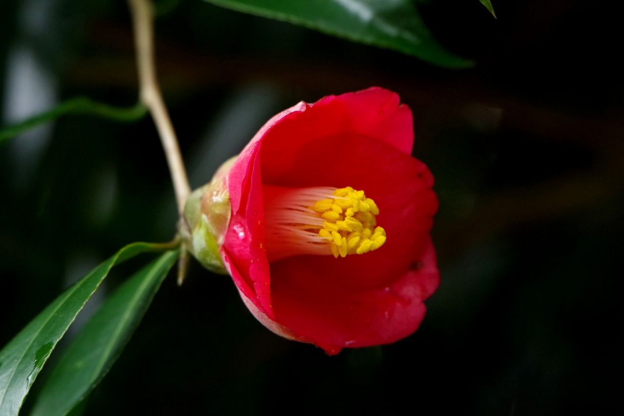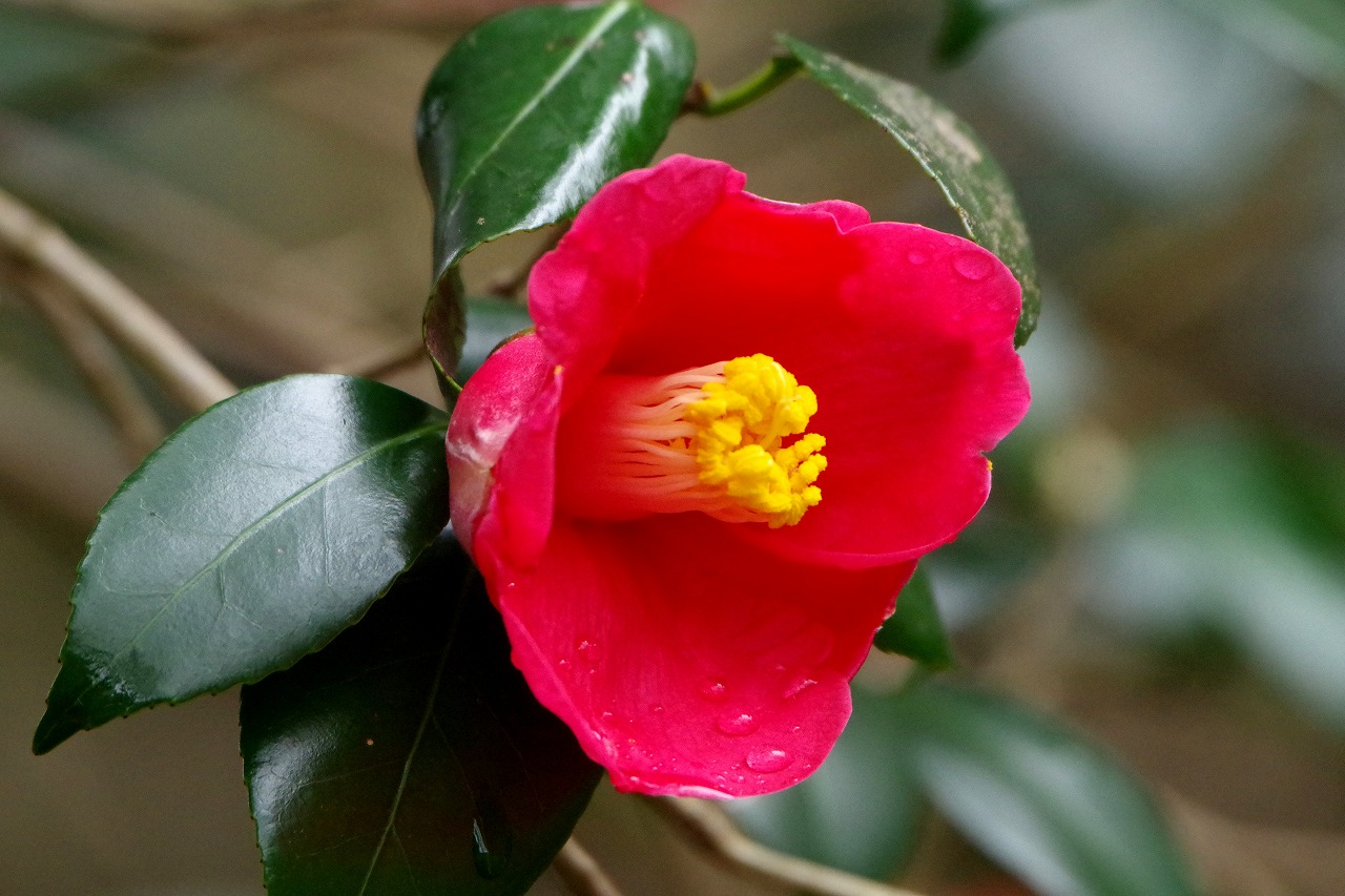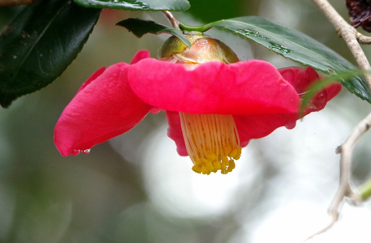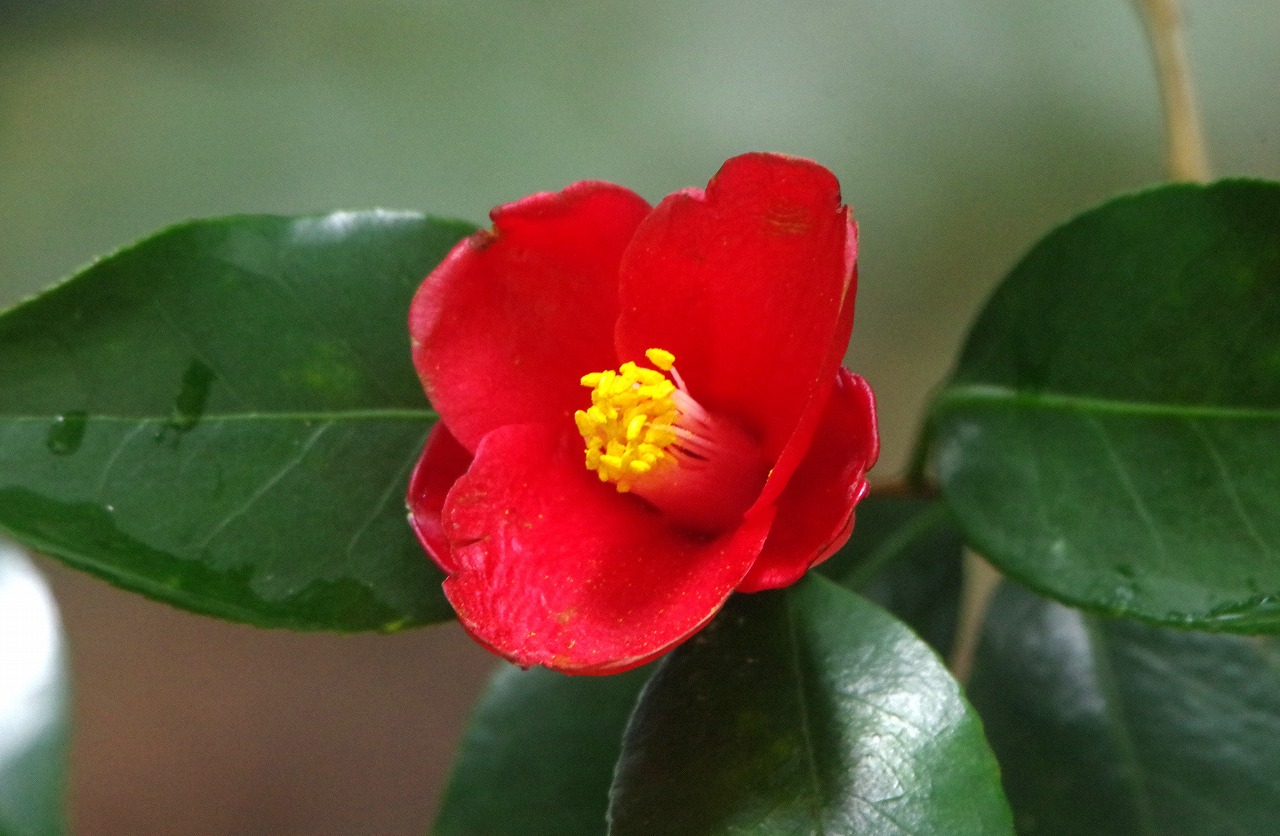 ヤブミョウガの上に落ちたツバキは尚色鮮やか。
