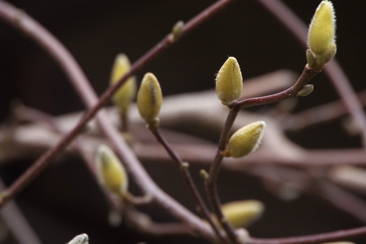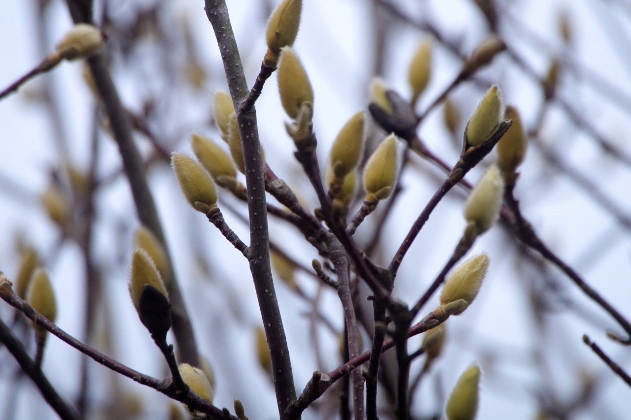 まだ開花まで間があるハクモクレン。例年ならもう咲く頃。