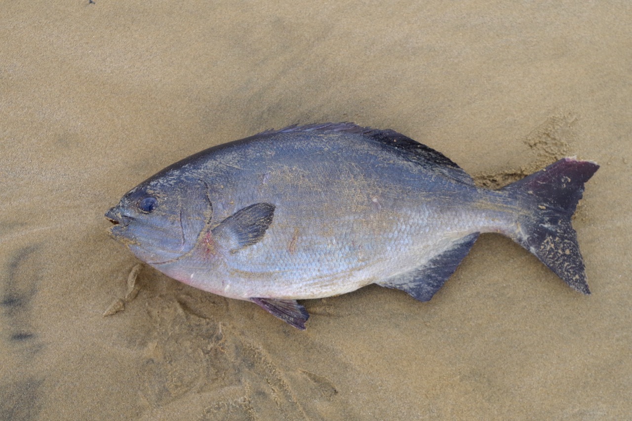この時期は例年ならウスバハギが弱って漂着することは有っても、イスズミが上がることは無い。