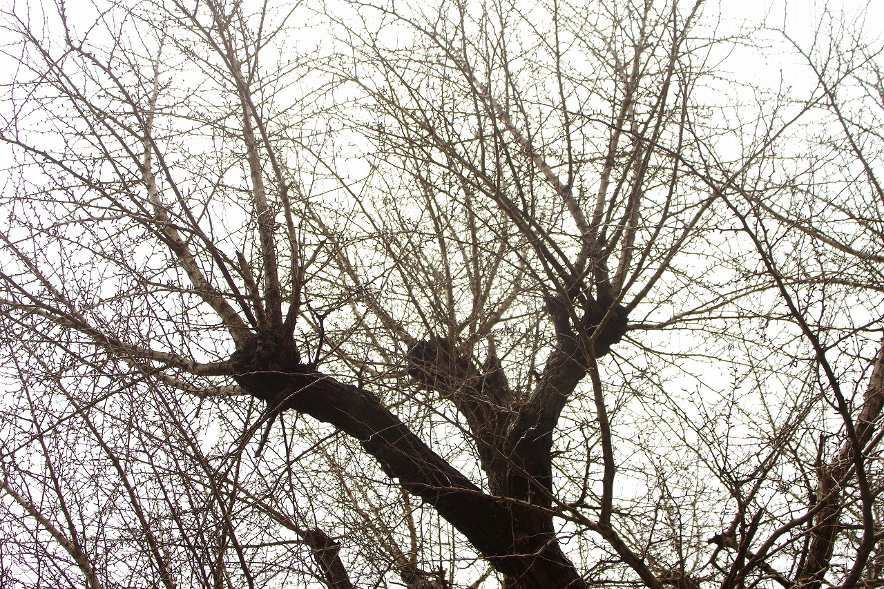 午後に少し出掛けた。神社のイチョウは芽吹き前。