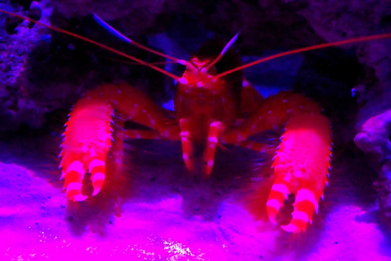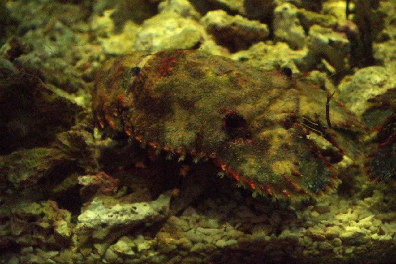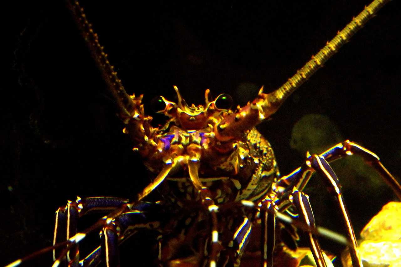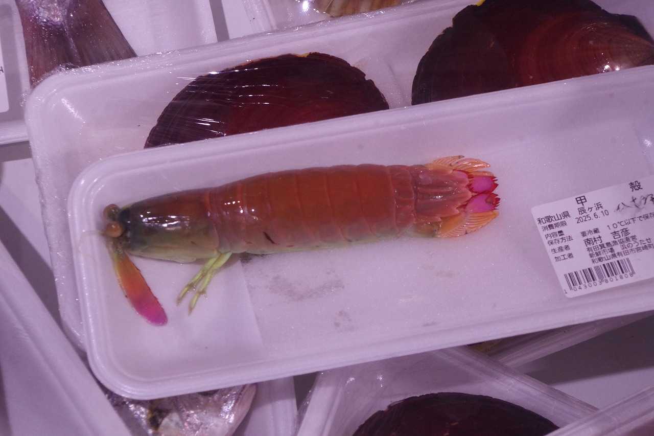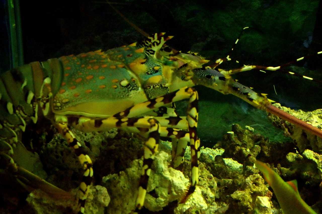 カノコイセエビ。イセエビはかつての産地伊勢や紀州は衰退して常磐辺りまで北上している。