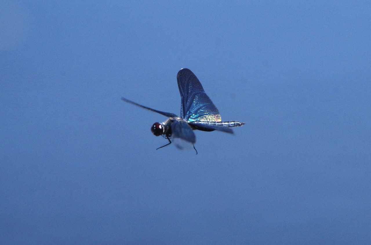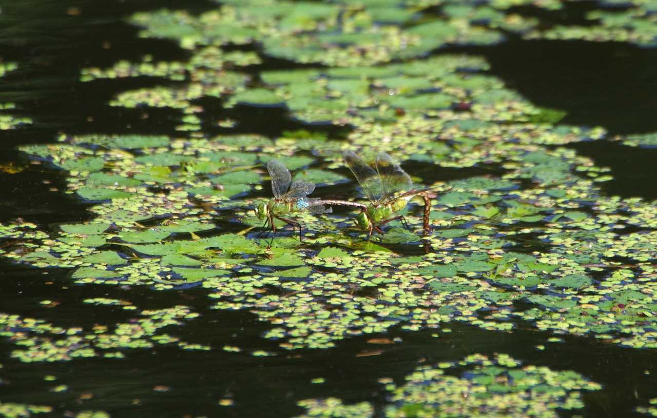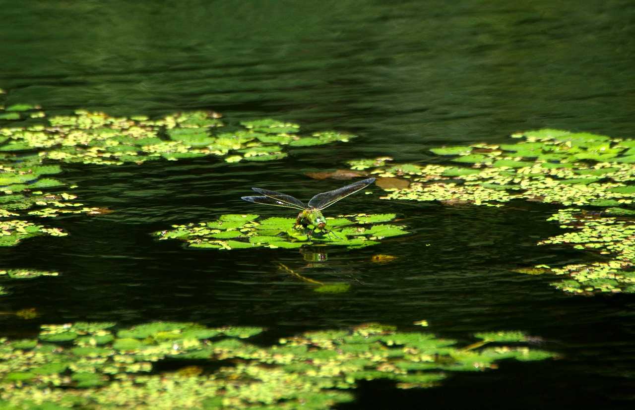 ギンヤンマの雌が珍しく単独で産卵していた。