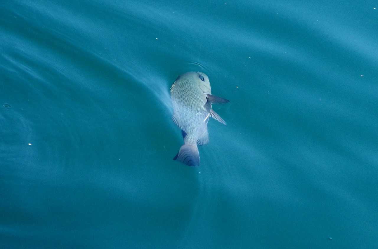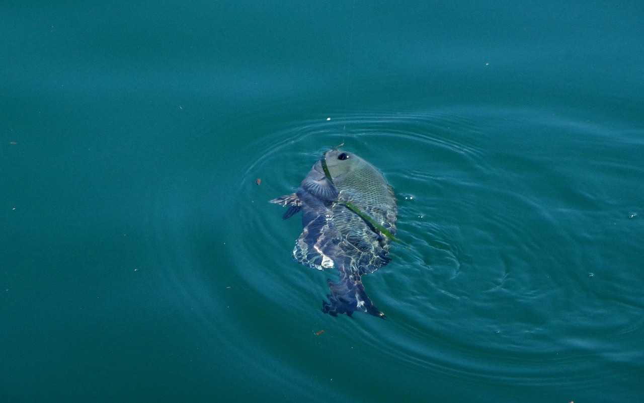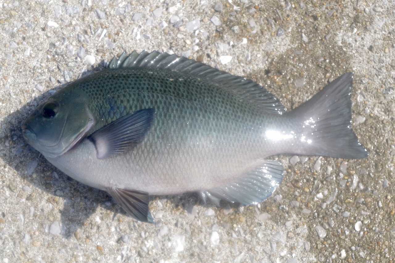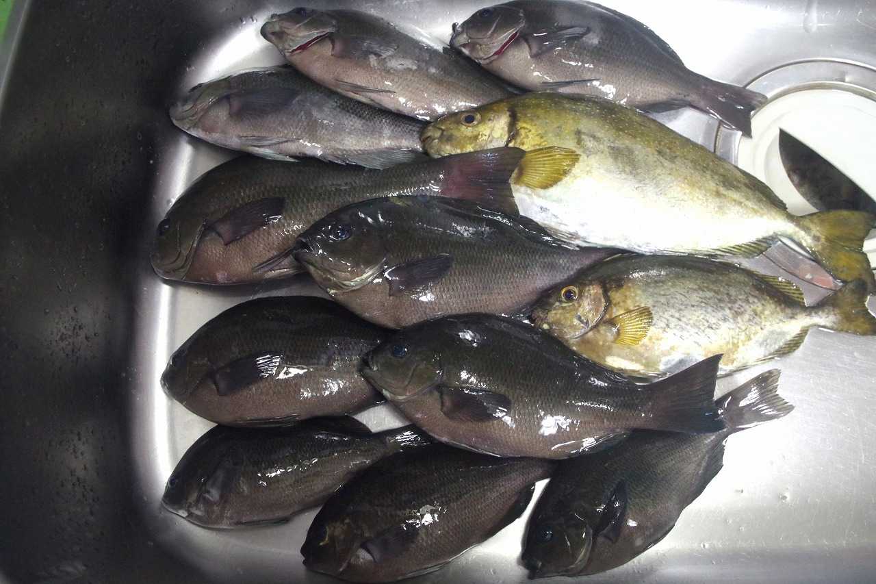 最近に無い成果。大型のバリ(アイゴ)が釣れて延べ竿の穂先が折れ、針は切られて逃げた。幸いサブの竿を持っていたのでそれで釣った。