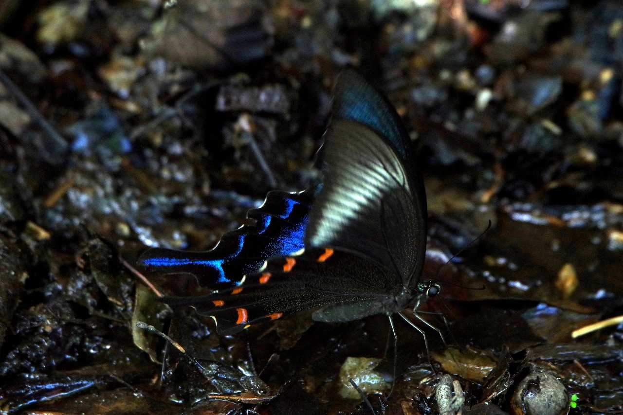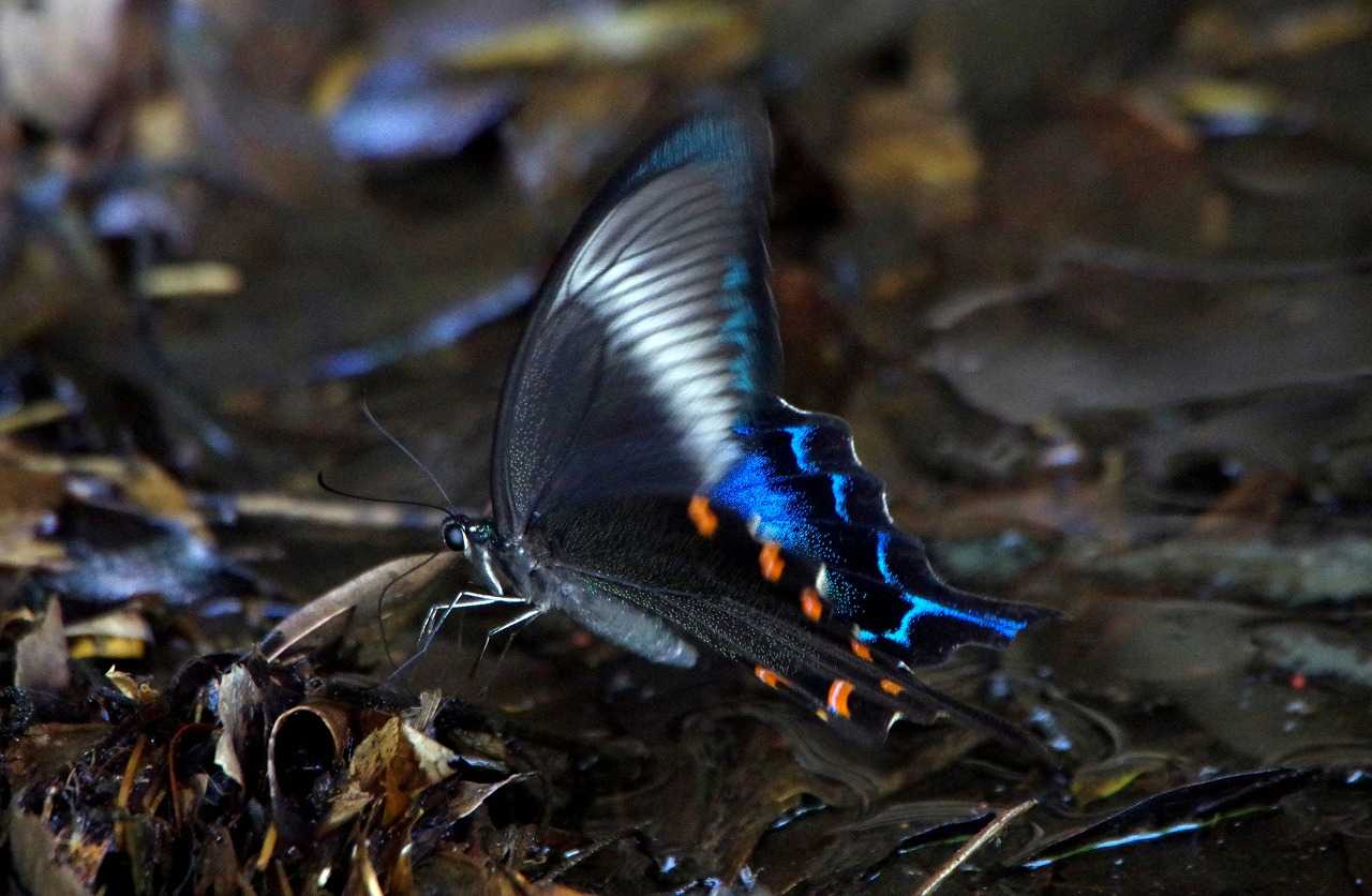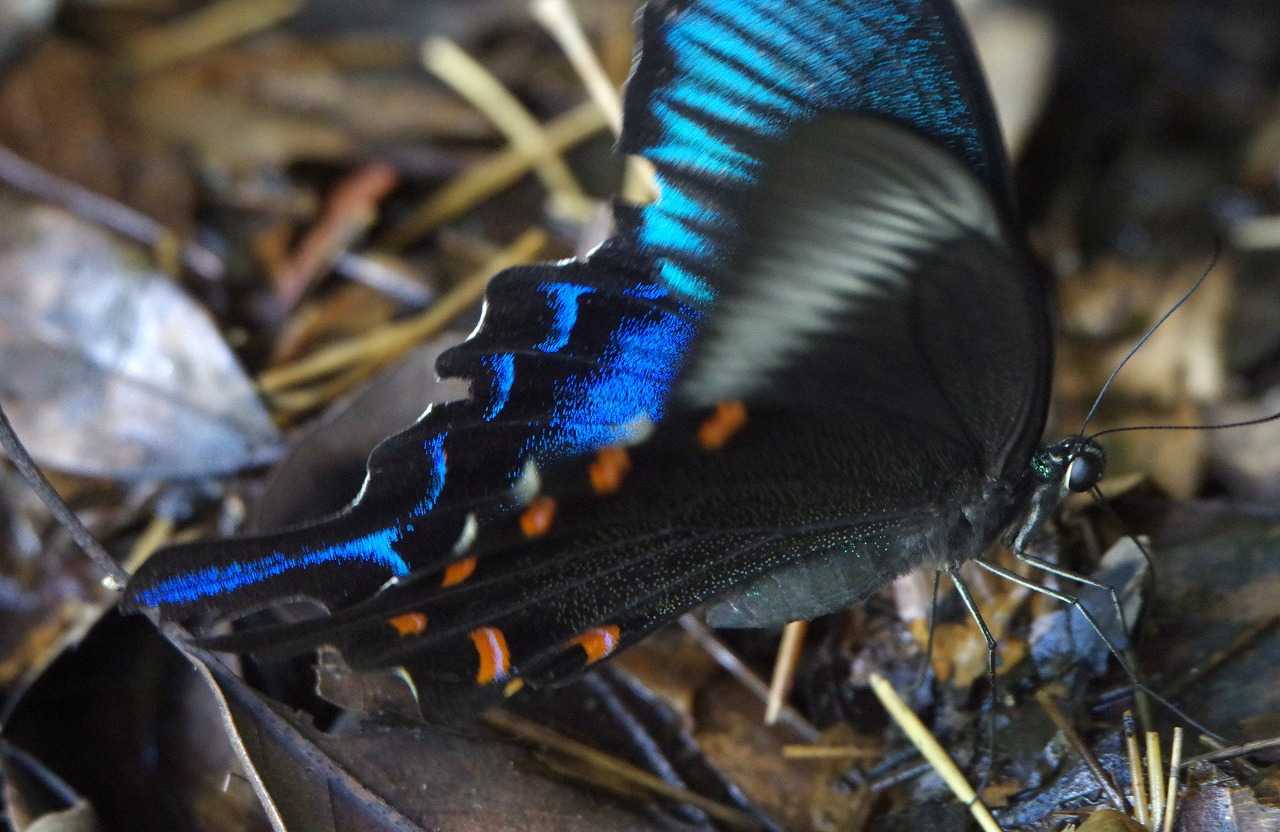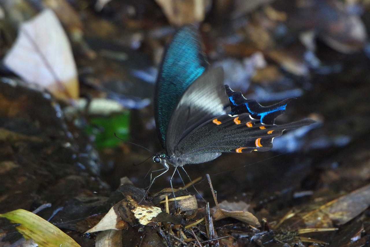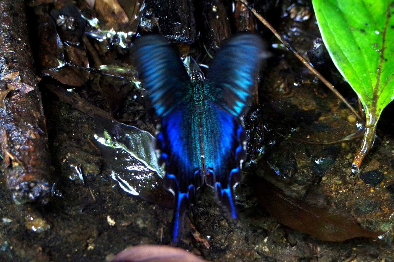 吸水中に車に轢かれて死んだモンキアゲハは、アリに喰われて転生する。