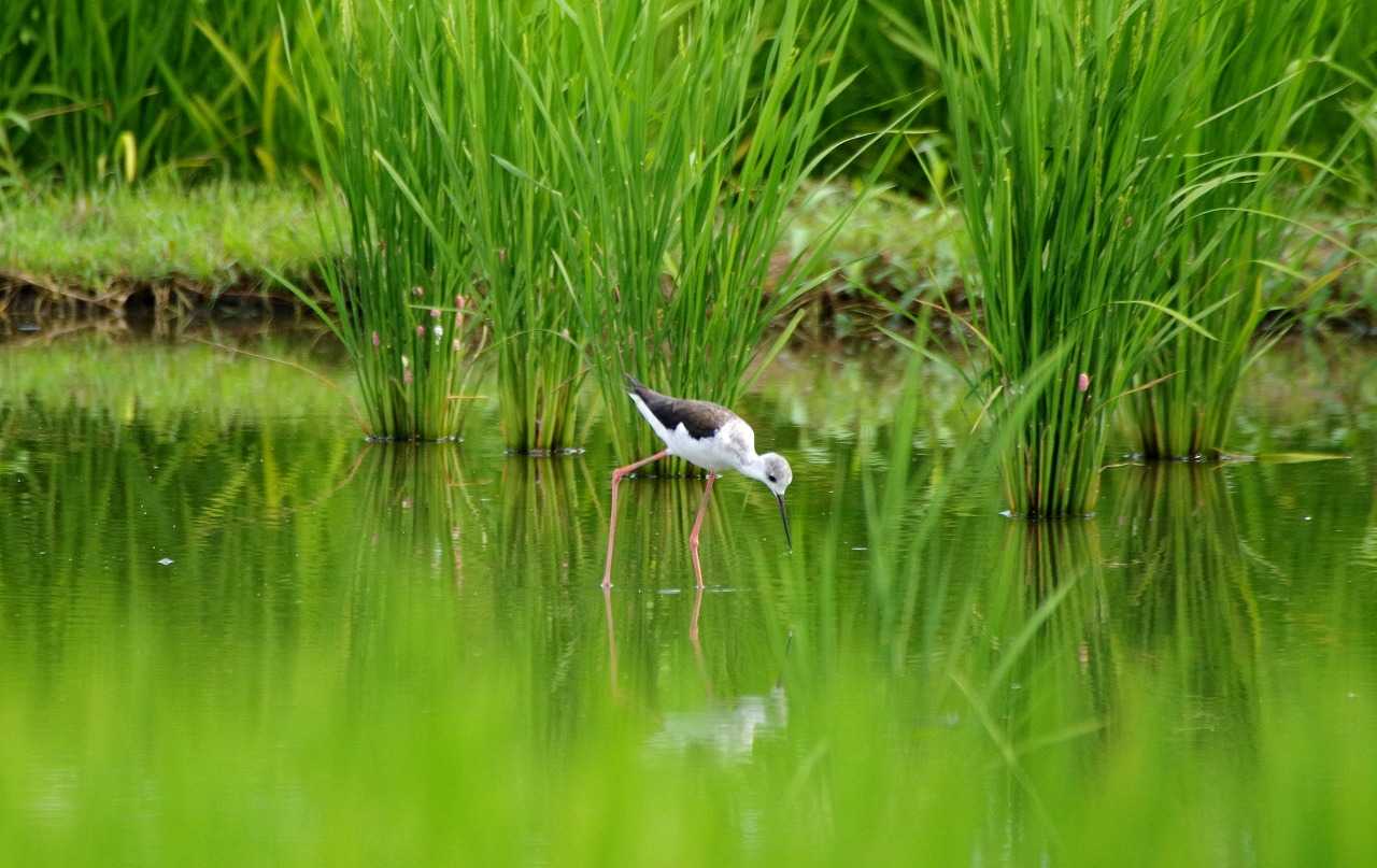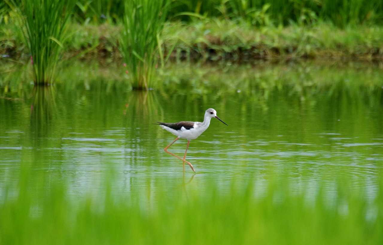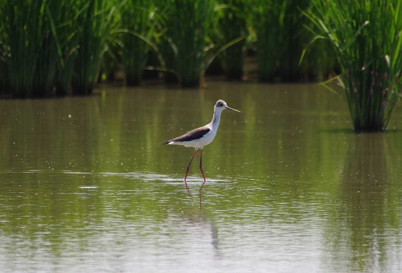 数時間後に朝の水田に立ち寄ると、まだセイタカシギはいた。