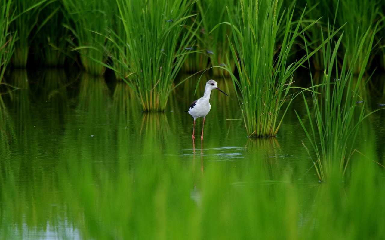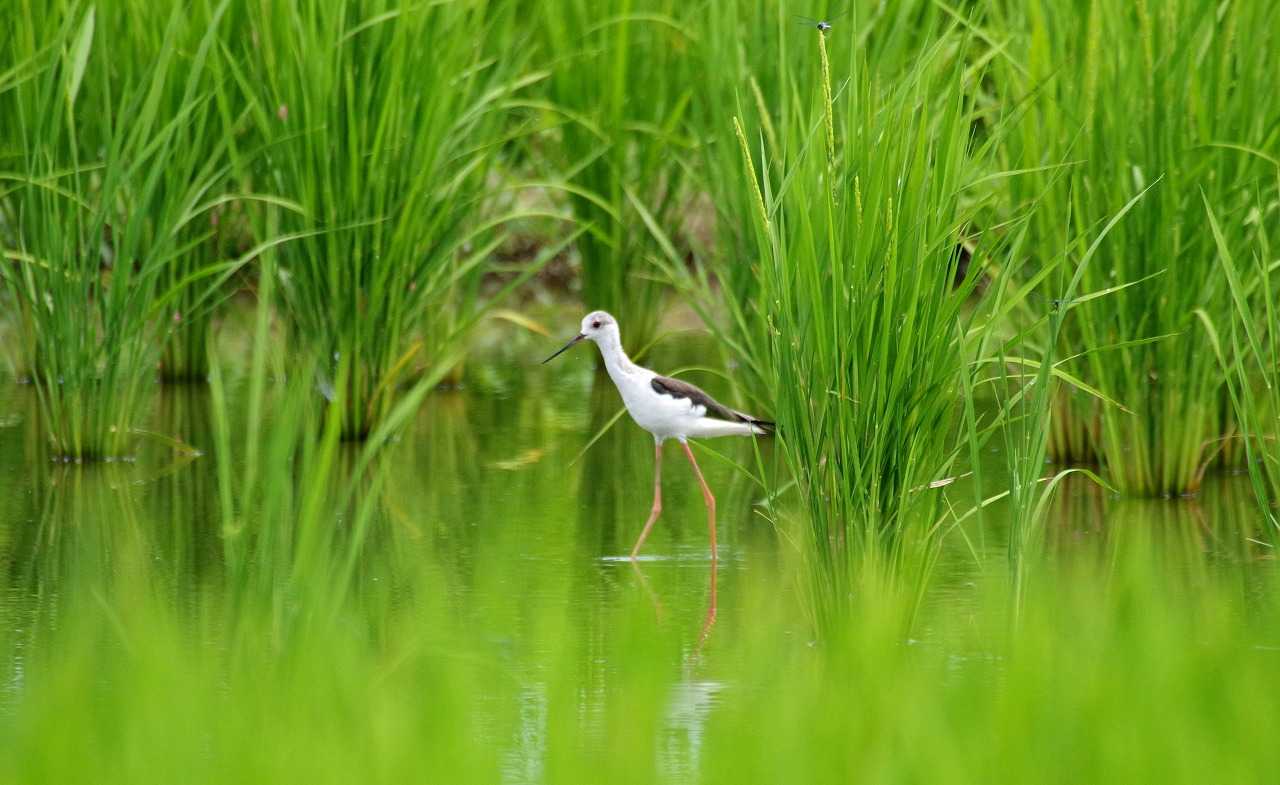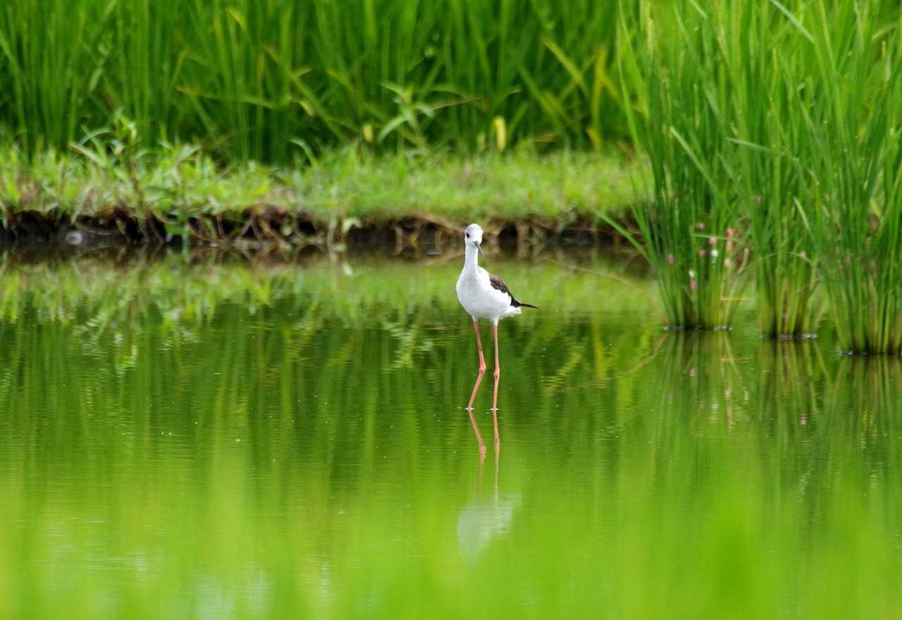 数時間後に朝の水田に立ち寄ると、まだセイタカシギはいた。