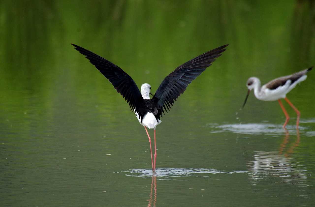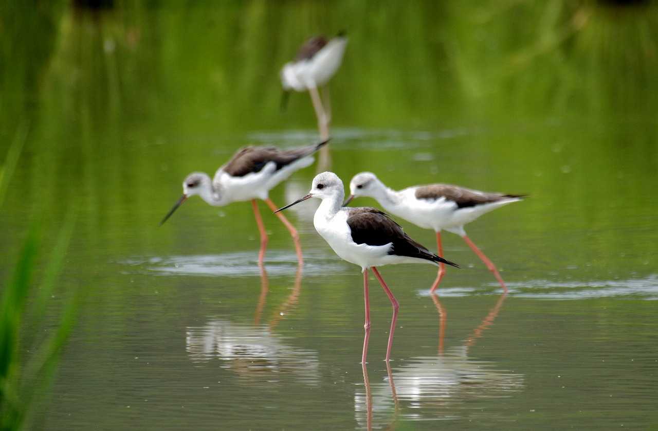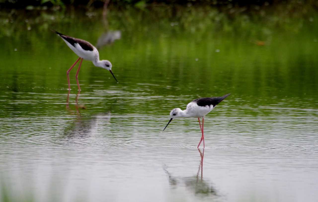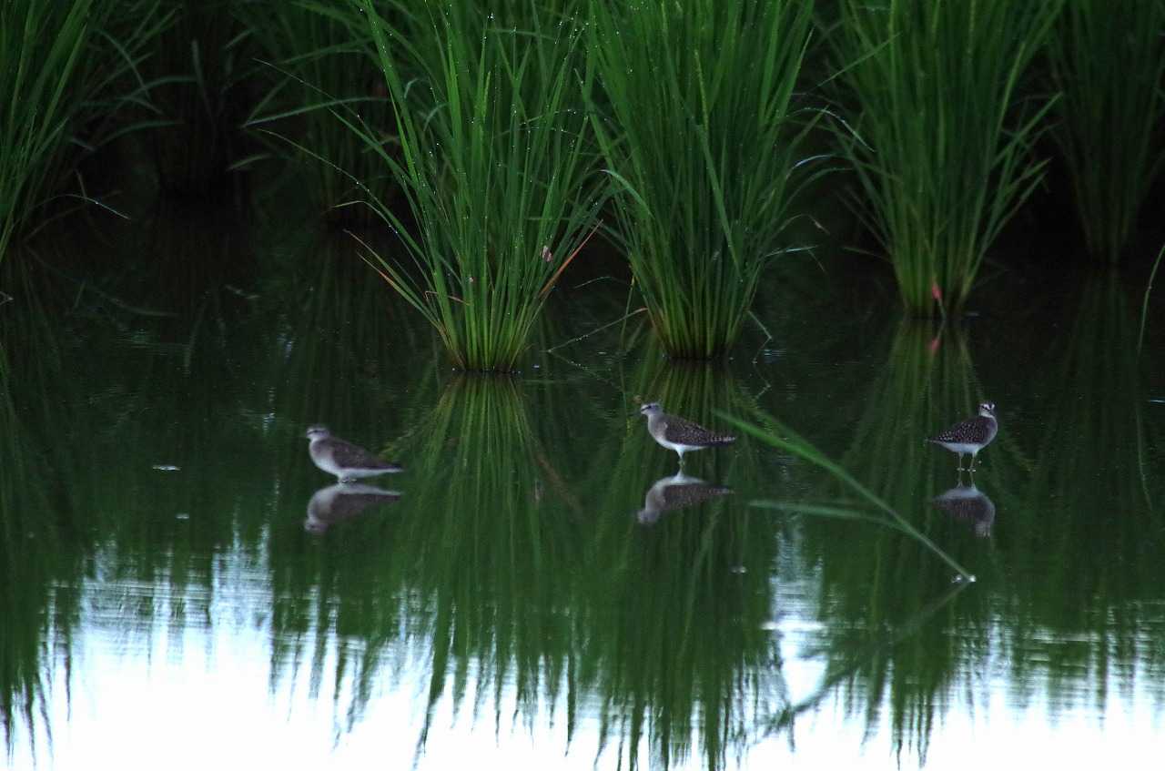 前日はよく見ることが出来なかったセイタカシギが、必ずいると確信があって行ってみると5羽いた。別の場所に1羽いたので同日に6羽いたことになる。