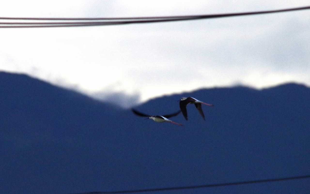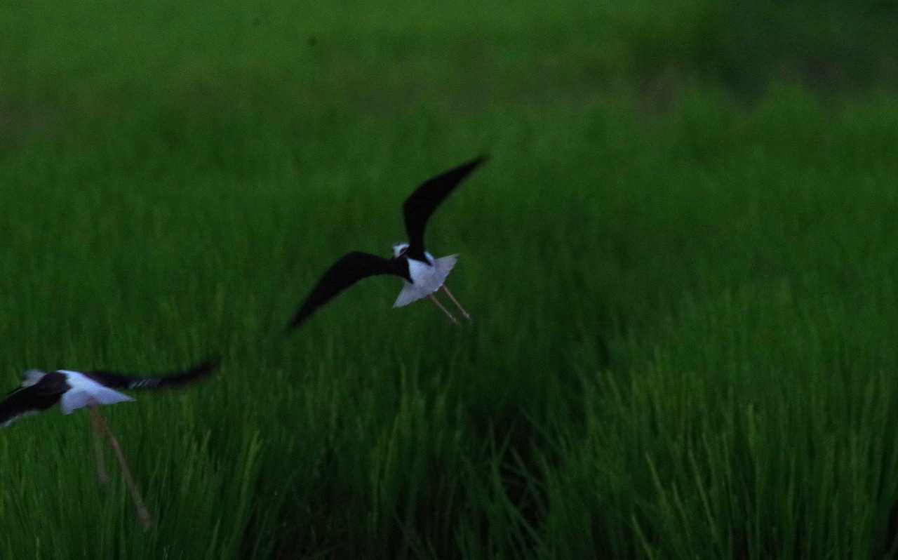 リンゴガイの食害で稲が無くなって広く開いてしまった水田に、見覚えのあるセイタカシギがいてバイクで通過する時に飛び立った。