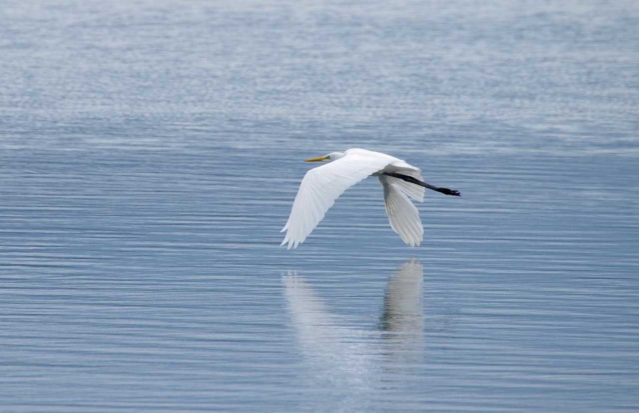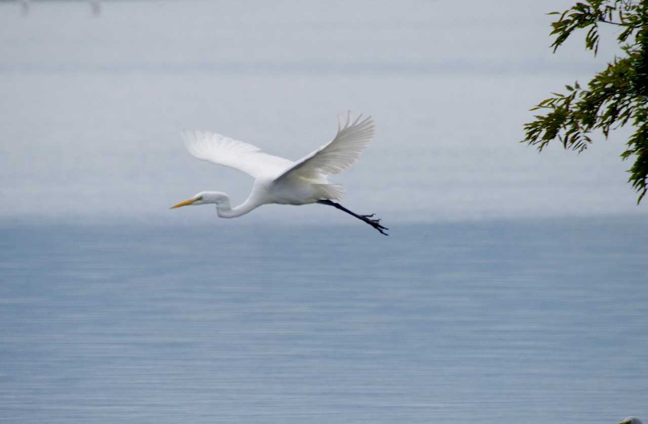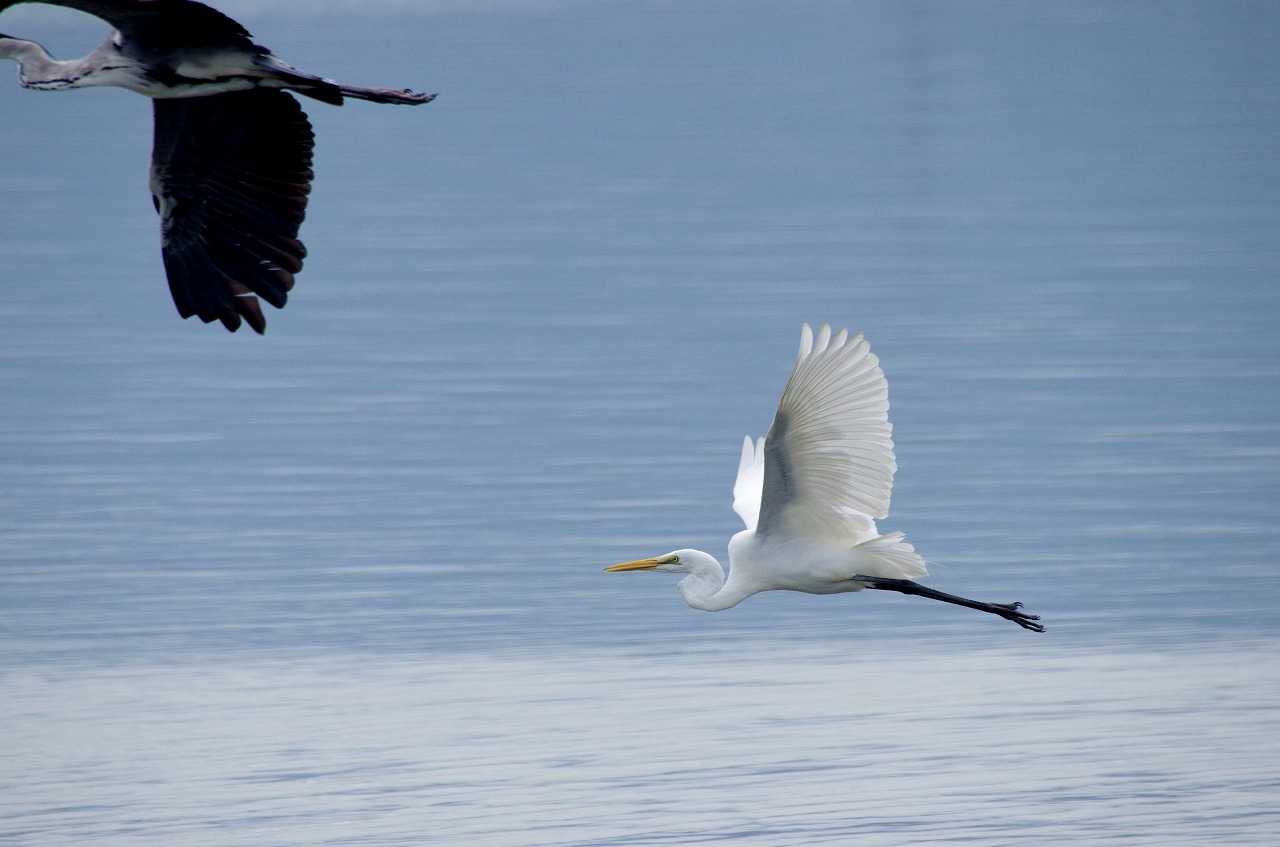 今津湾内の木に止まっていたダイサギやアオサギは潮が引いて漁が出来るまで待ち、時が来れば一斉に浅くなった場所へ急ぐ。