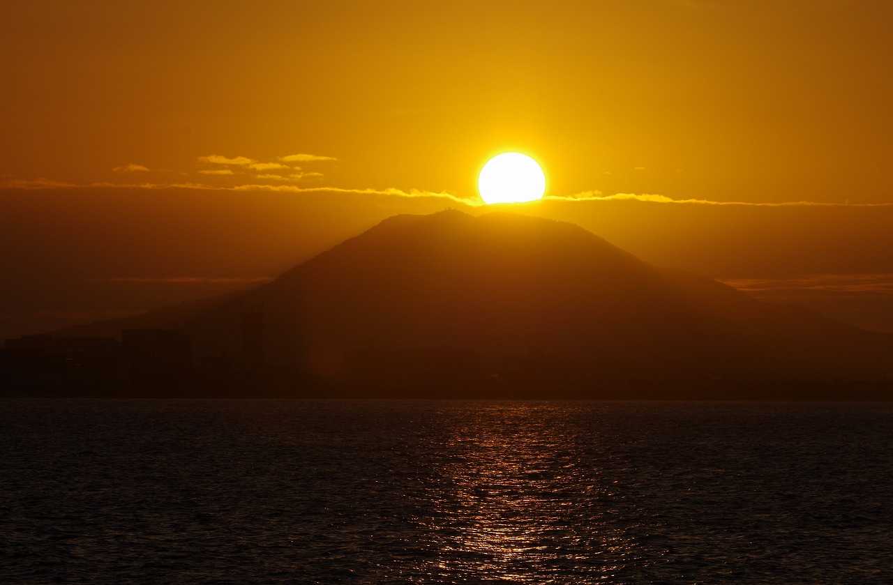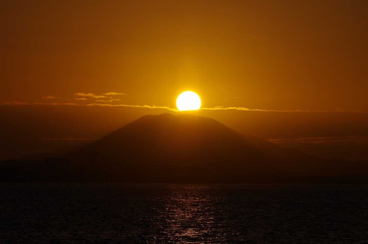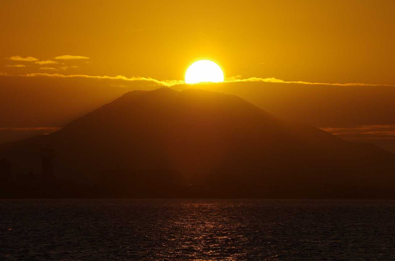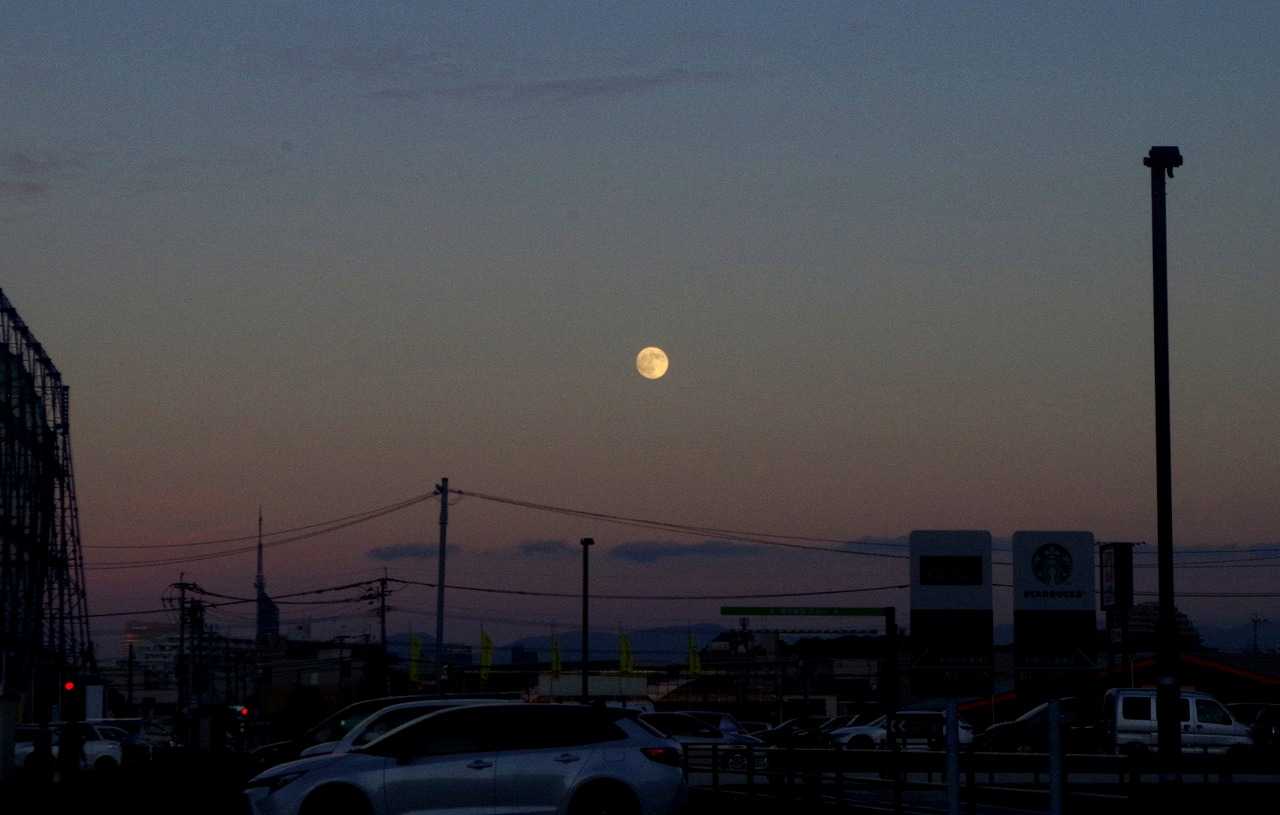 西浦の少し西の二見ガ浦で海に沈む月が見られるはずが、これまで海に没する満月を最後まで見たことは長い年月でも何回も無い。月の出は普通に見られるが、東は陸で海からは出ない。