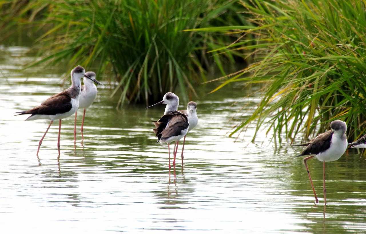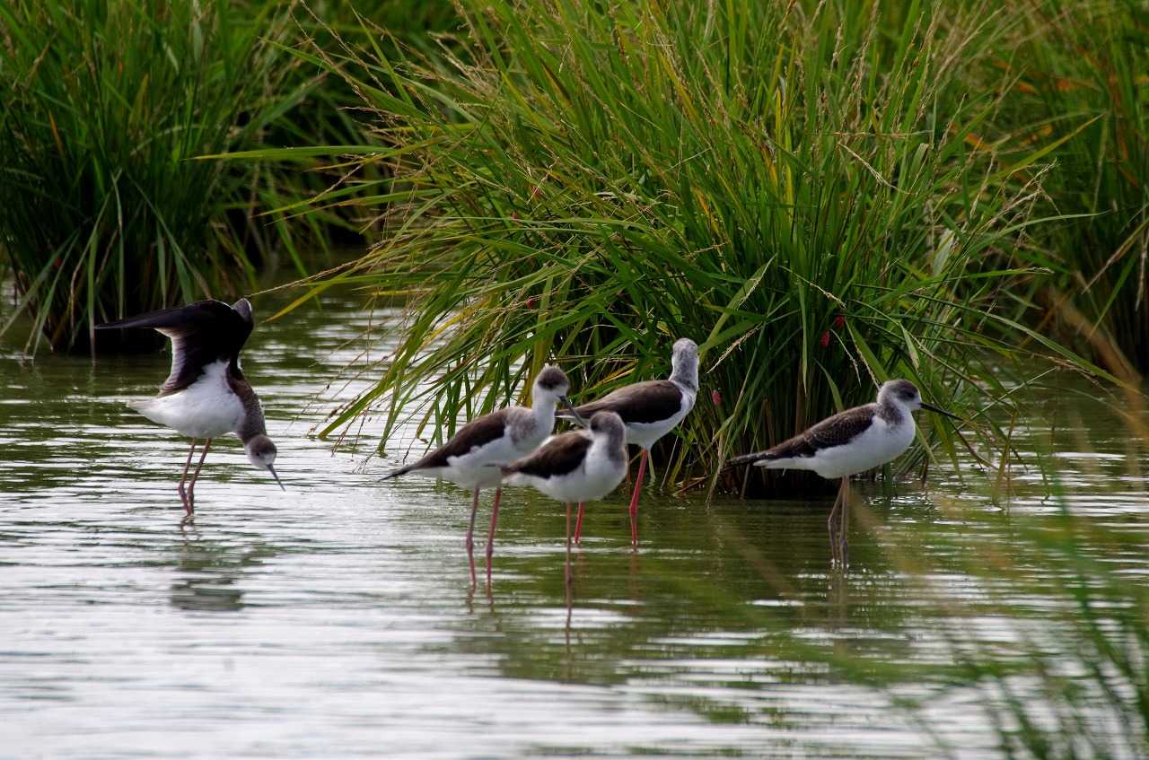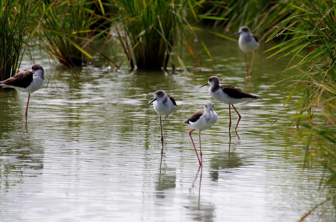 お決まりのセイタカシギはこれまでで最多の7羽いた。幼鳥と成鳥が入り混じっている。