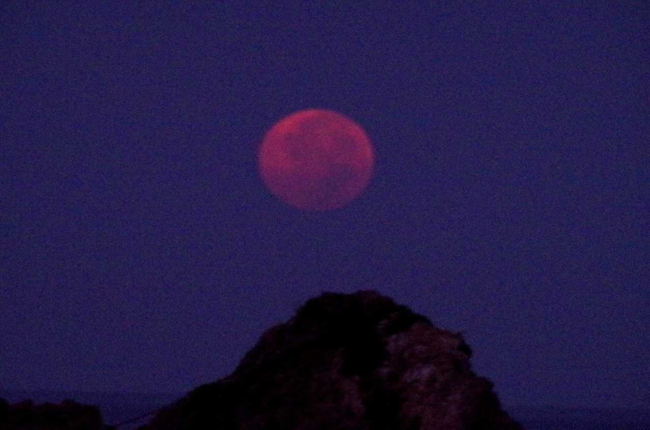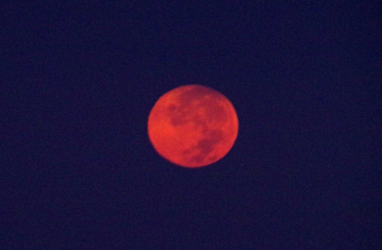 雲の層を抜けて赤い月は次第に全身が見えるようになった。あと少しの所で雲と濁った空気で姿は消えてしまった。