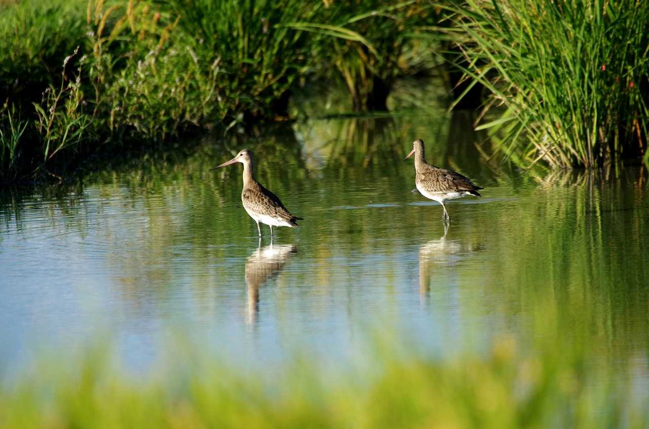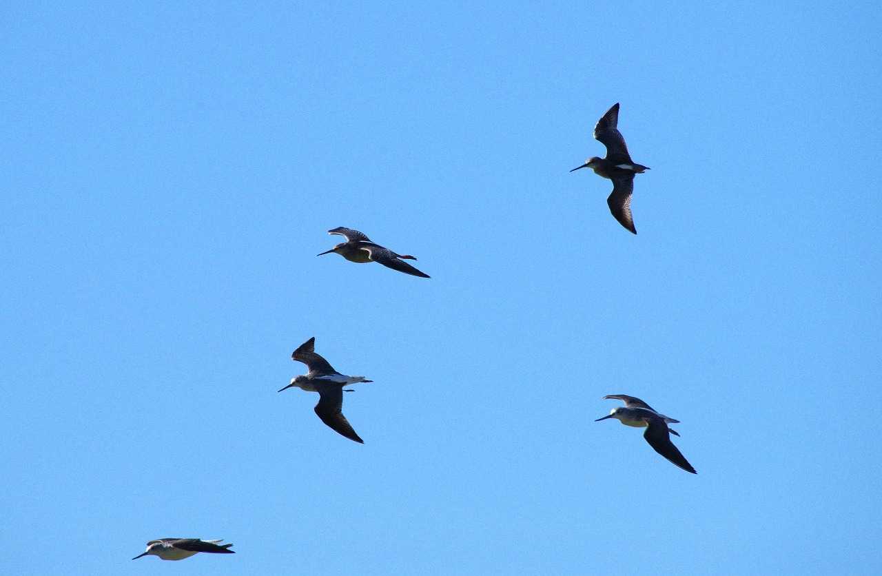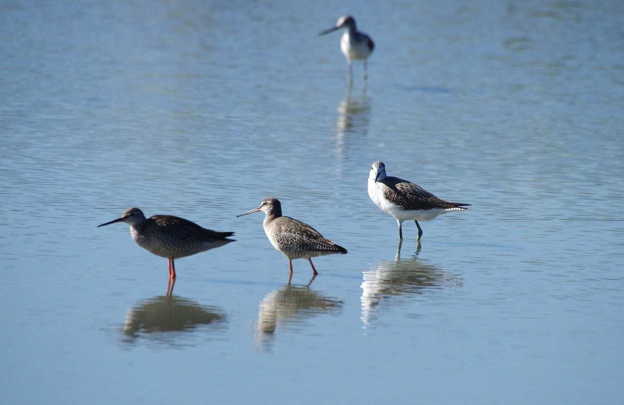 左2羽はタカブシギ、右はアオアシシギ。