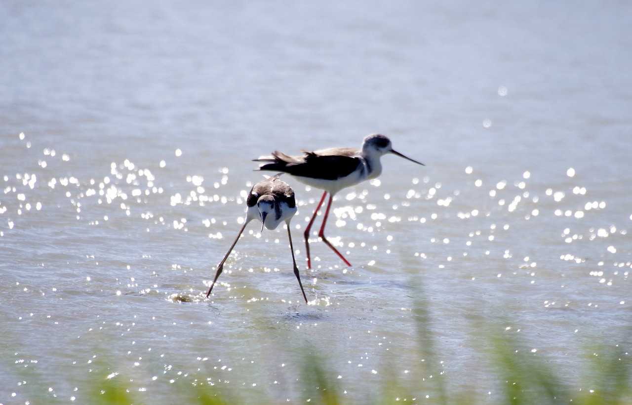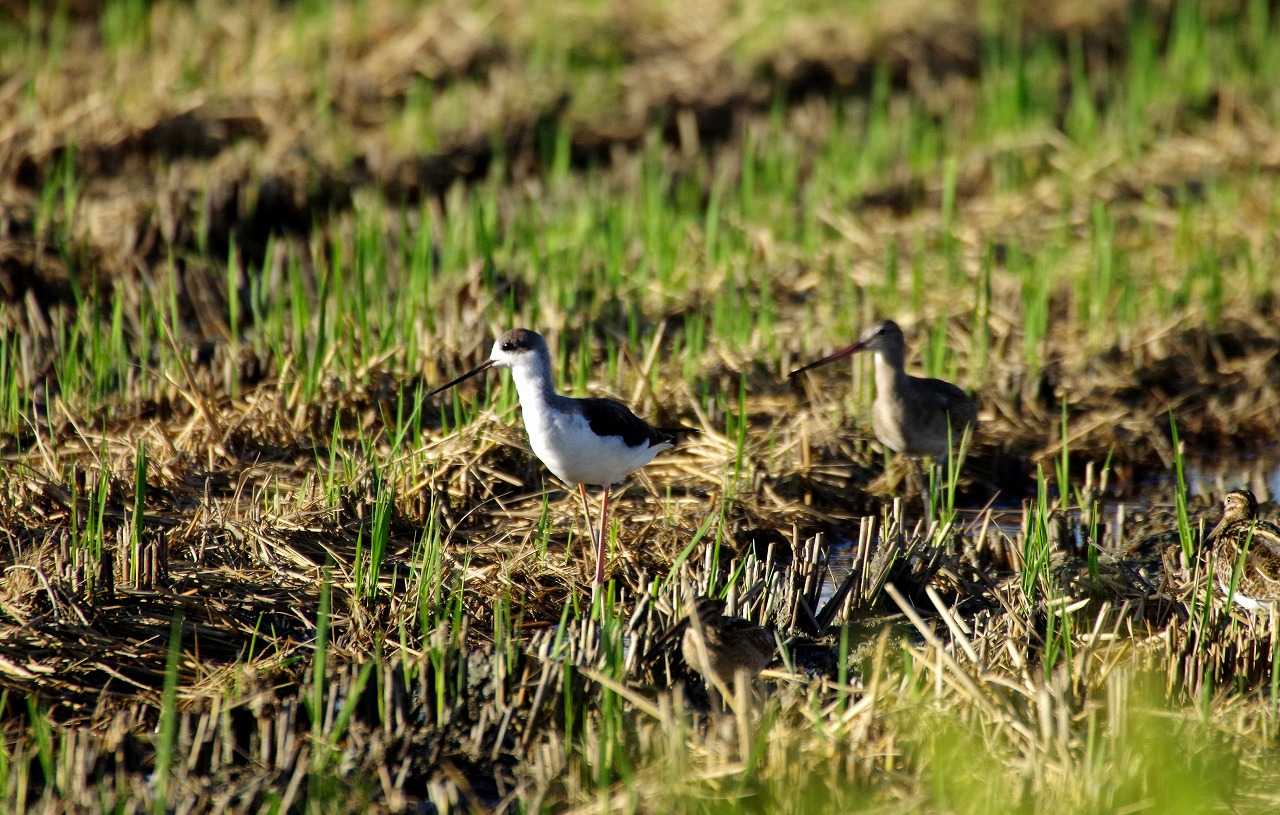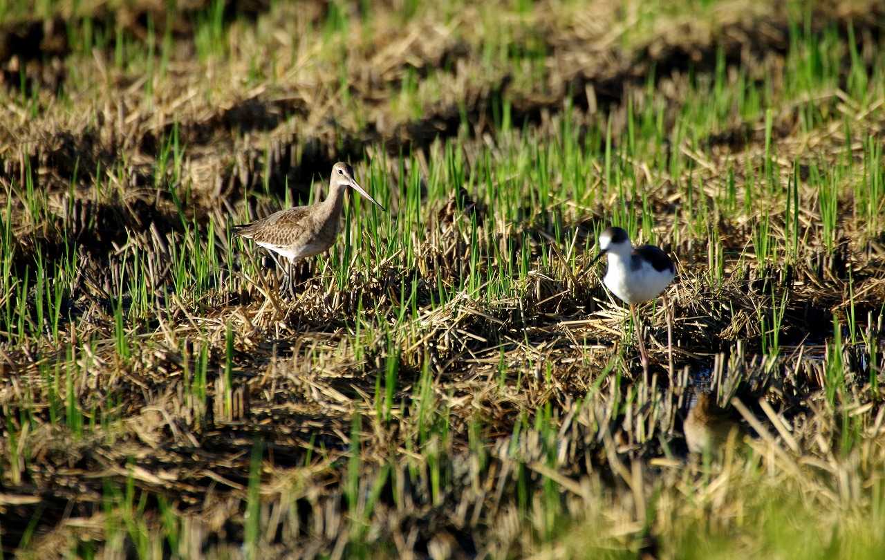 オグロシギ若鳥とセイタカシギ