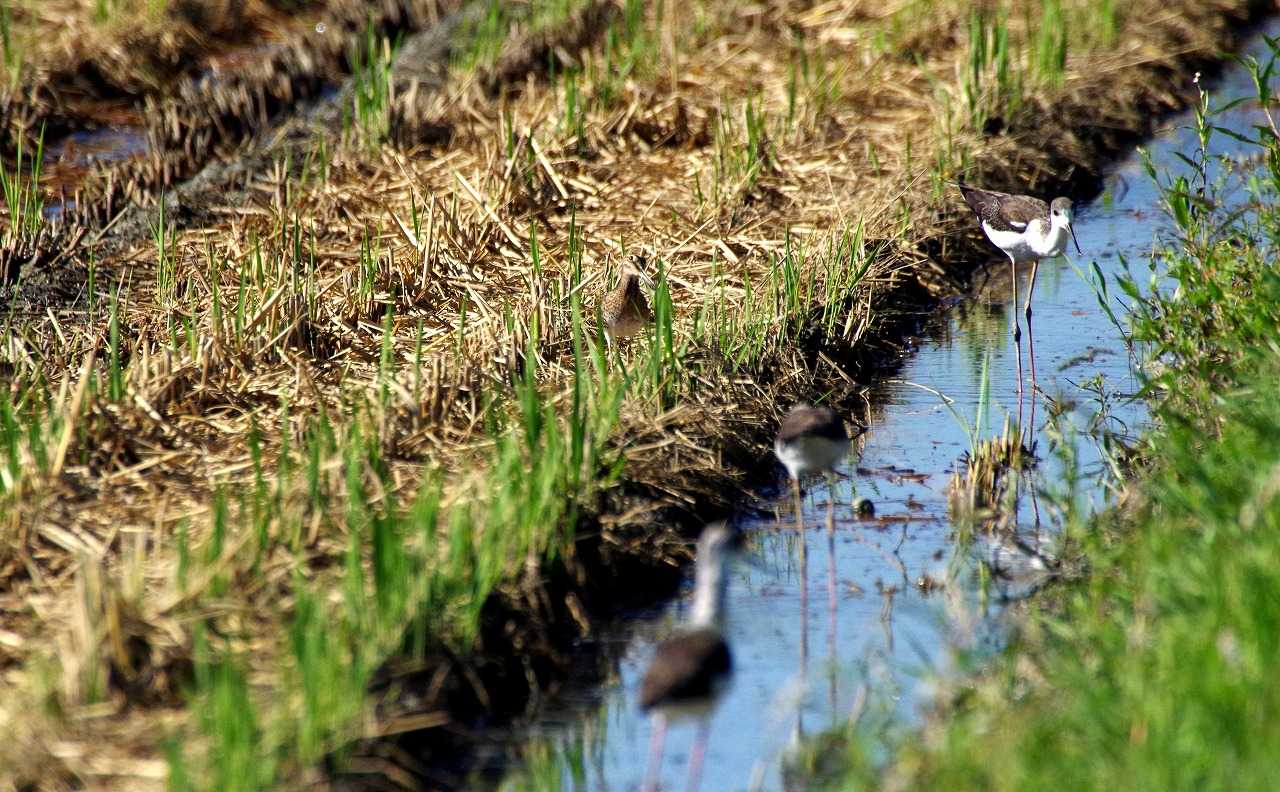 中央にタシギがいるが同化して目立たない。