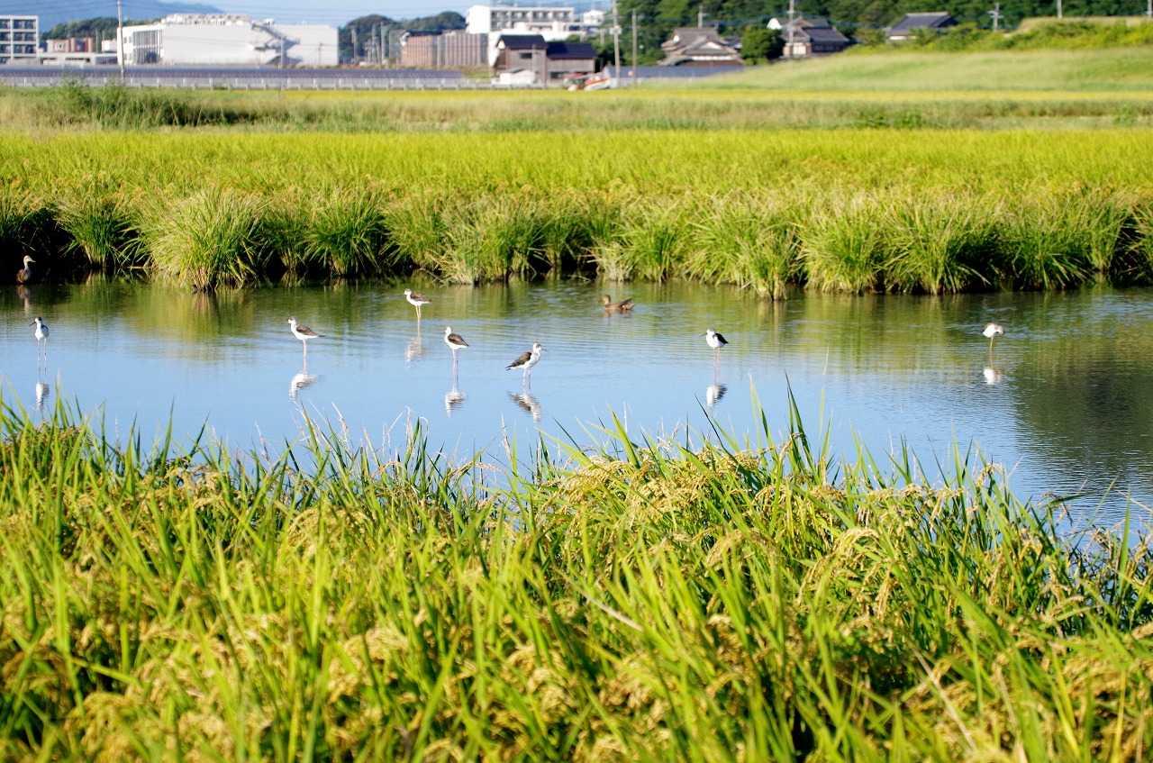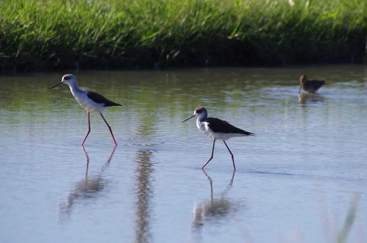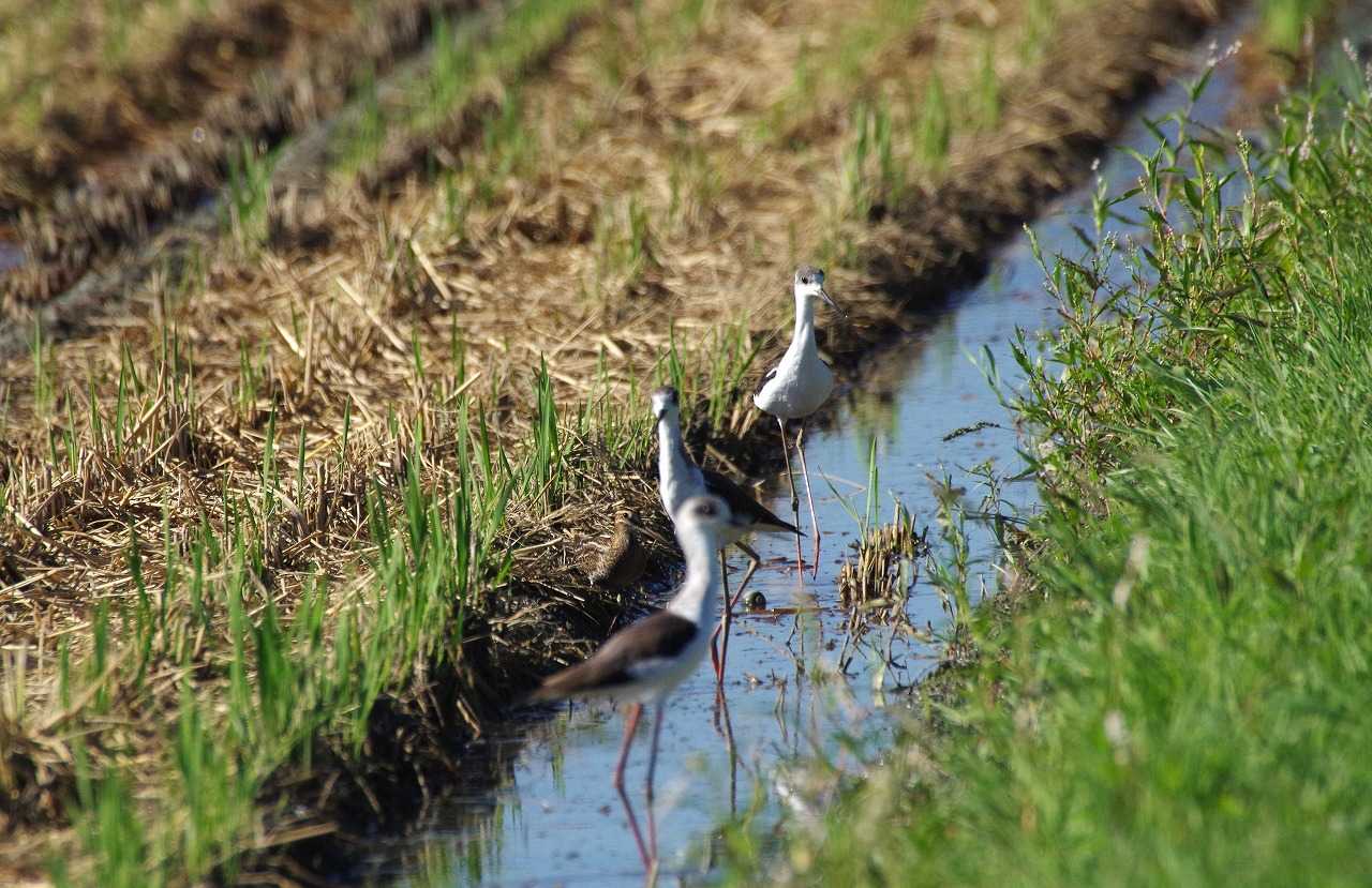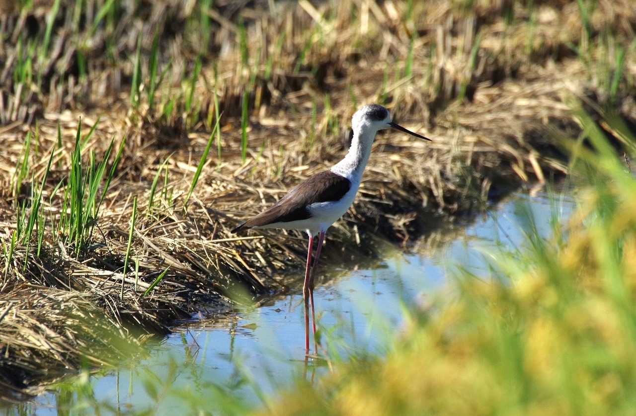 帰りに見たらセイタカシギは朝と同じく留まっていた。
