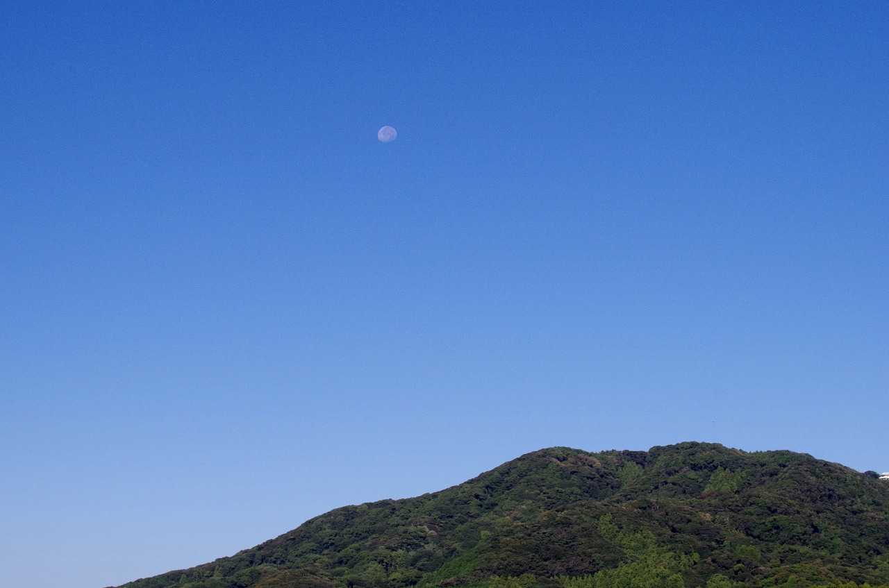 野北の彦山の上に下弦の月。