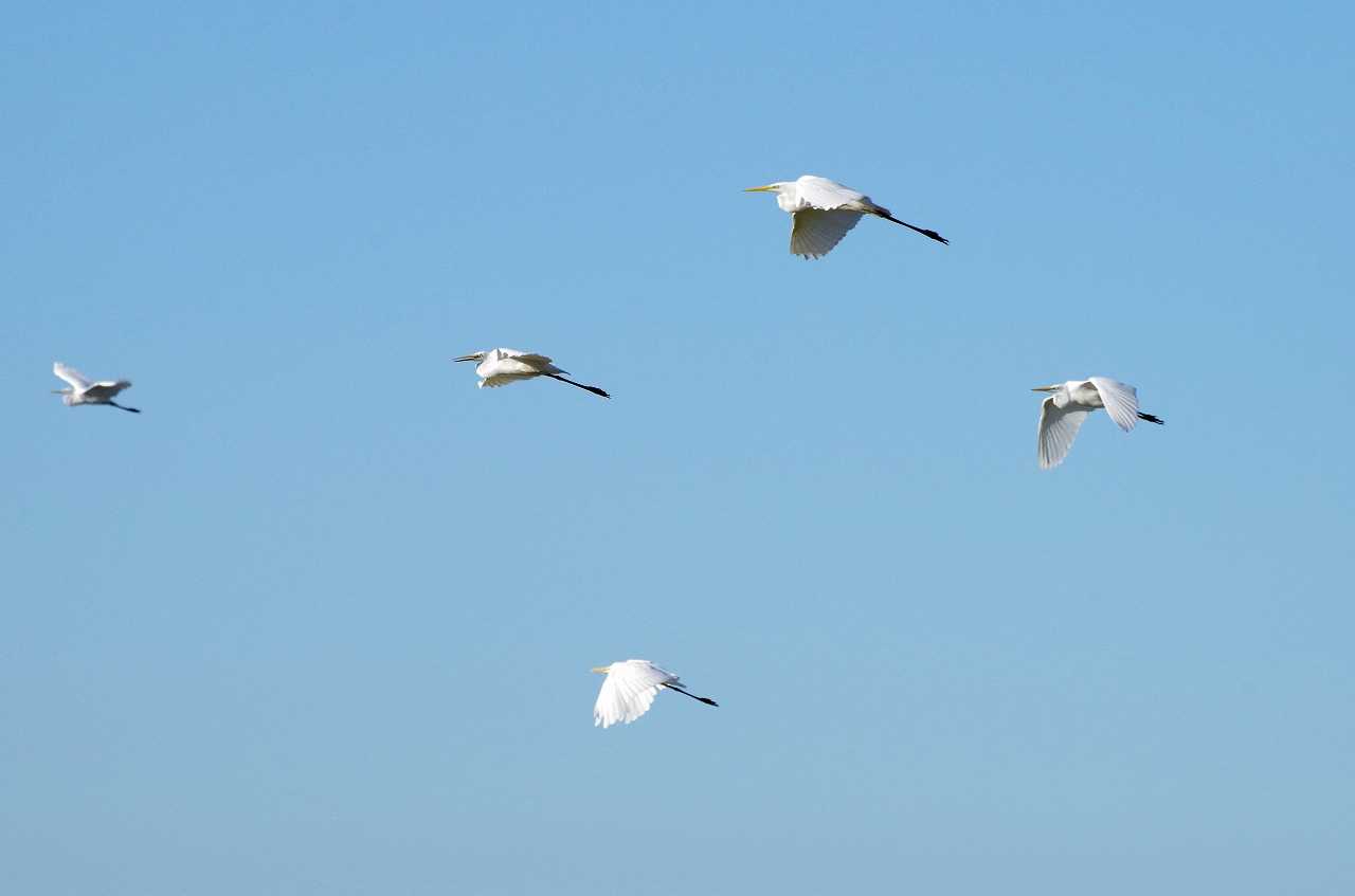 移動するクロツラヘラサギ。次第に数が増えている。
