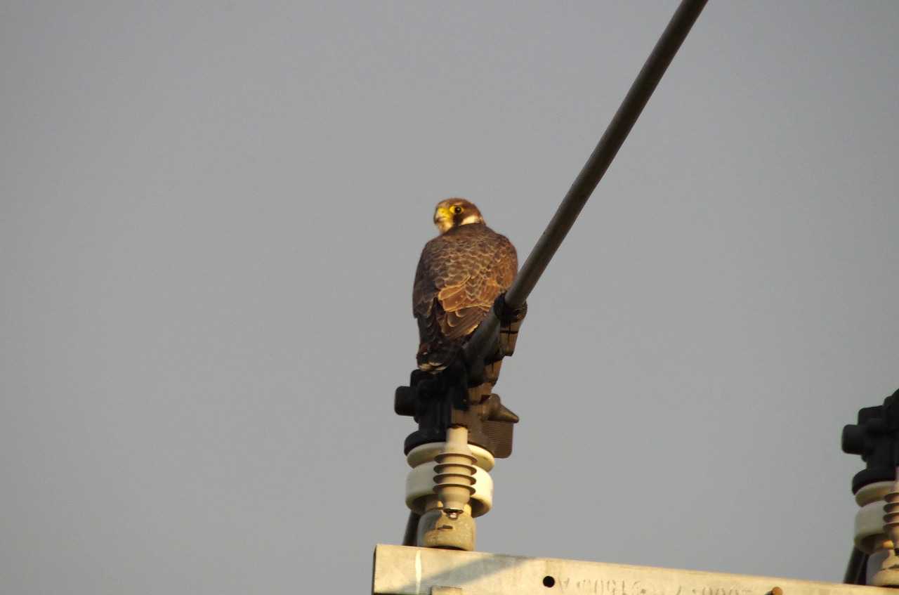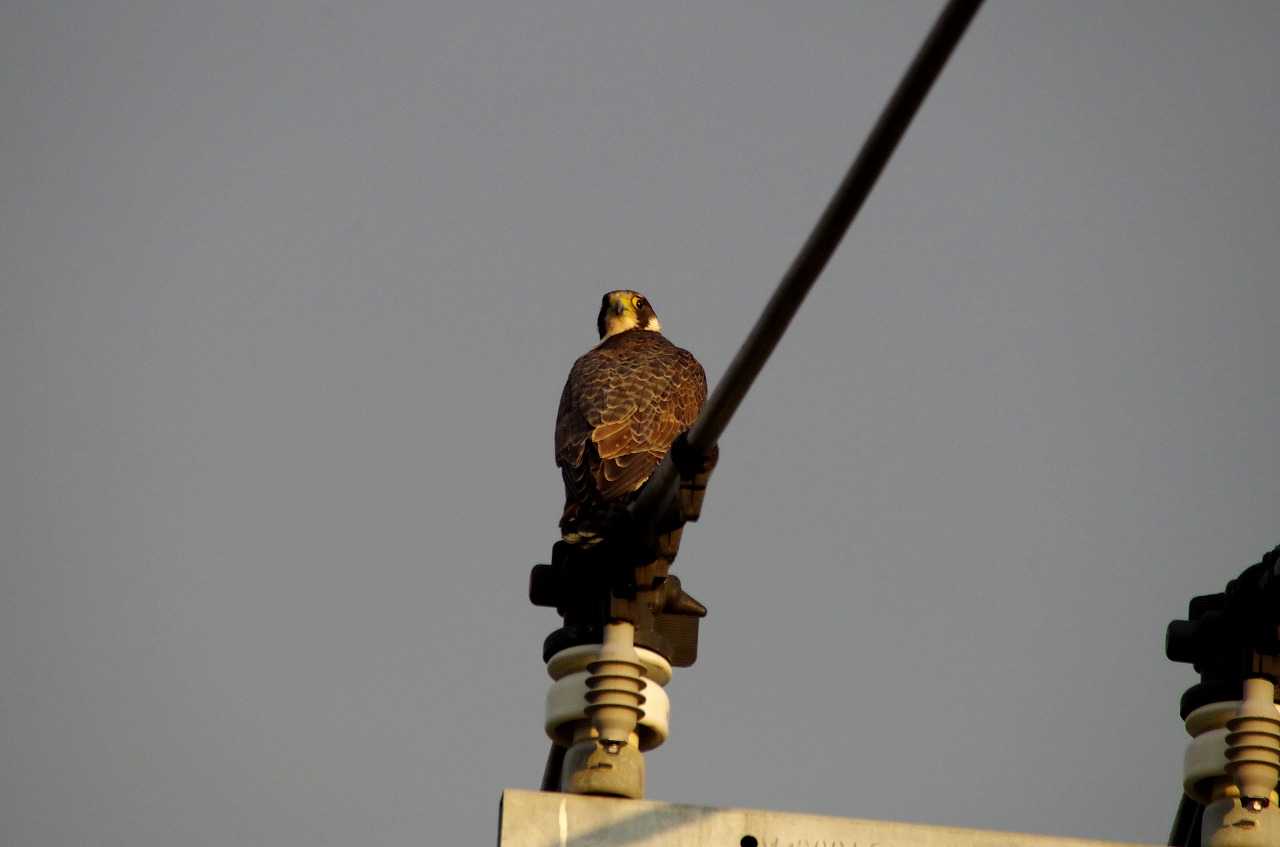 ハヤブサは大きくないので雄。成鳥になったばかりの若いハヤブサ。