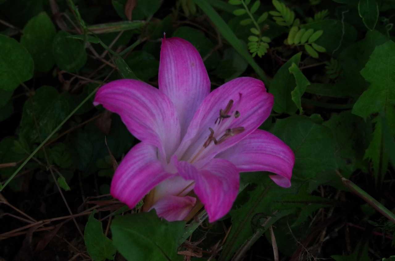 時を忘れたナツズイセンが球根からいきなり咲いていた。