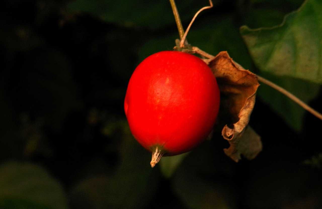 朝日に負けない程赤いカラスウリ。