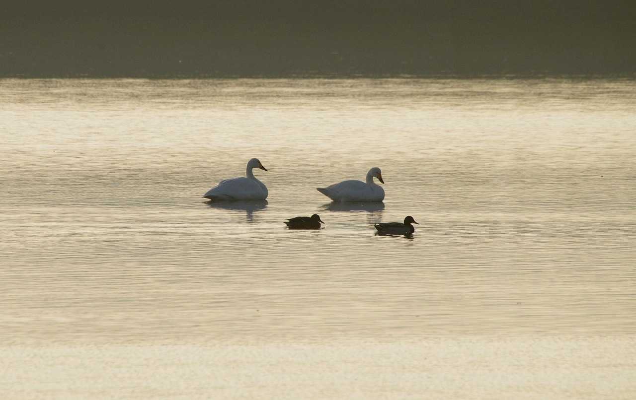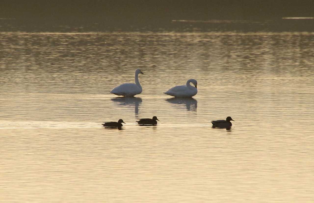 この時期にはハクチョウやガンの仲間が見られることがあり、多くは短期滞在ですぐにいなくなる。