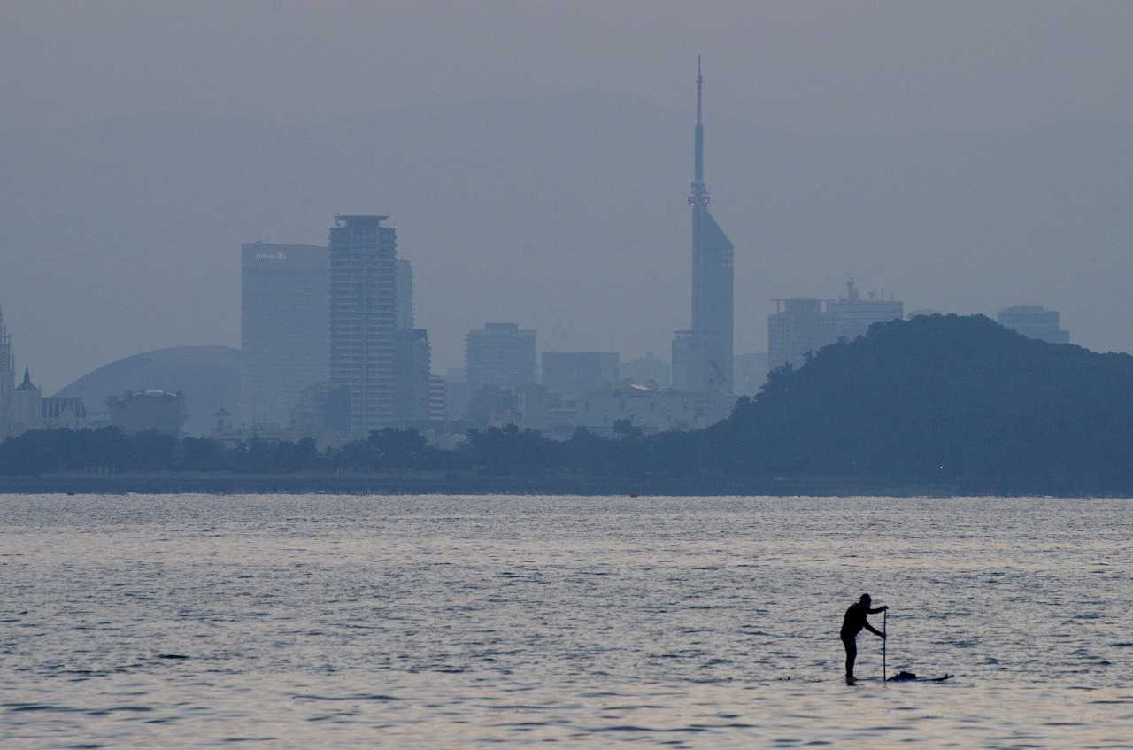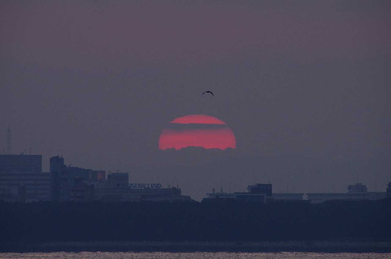 空気が濁り朝日を見るのには好都合。