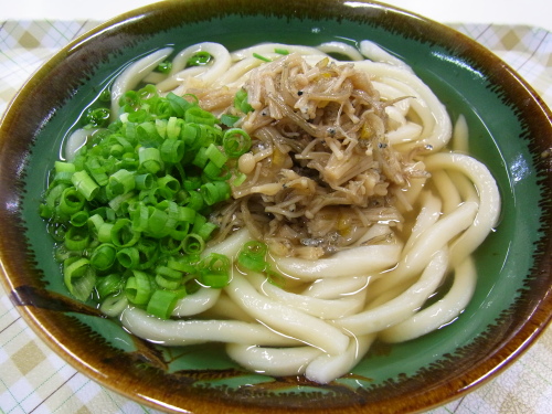 本日のさぬきうどん これのみ350円なり!高雄さんの 今週の週替わりうどんは これなっしー『ちりめんえのき』 って 初めて 食べました(ちりめんおろしは 大好きなり)こりゃぁ 考案した 大将 さすがだなぁぁ、 むちゃ 美味い家でも 実践してみましょう 小さく刻んである すだちが見えますか?これが いい味だしてます。あったかい うどんなんですが、ホワイトボードの説明通り ちりめんえのきを ちょこっとずつだしと麺に絡めて すすりますと、あっさりして いながら 超美味です。懐かしい写真はこちらランキング応援お願いします!ワンクリックお願いします