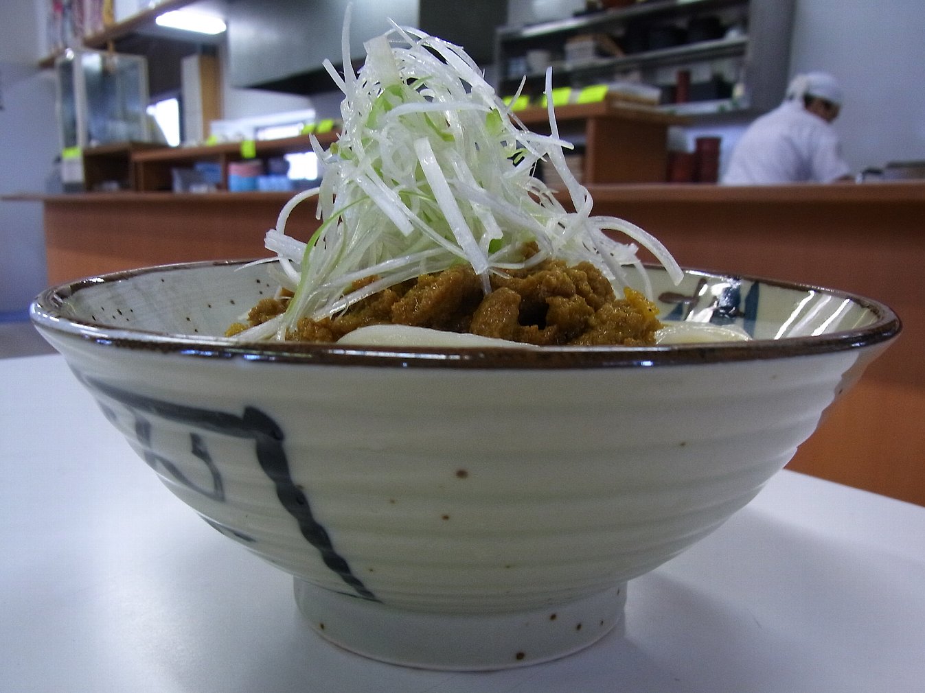 本日の昼飯代 これのみ480円なり!今週の 高雄さんの 週替わりうっどーんは これだぁ白ネギと セロリの 混合千切りが 美しく そそり立っちゅうがです。これ カレーの挽肉と 一緒に 食べると たまらん 美味しさです。そして カレーは味噌と和えてあるので、独特の スパイシーさで うまぁぁぁ!ひき肉も めっちゃ たくさん 入ってまっす。やはり カレーには ご飯が 欲しくなりまして おにぎりもいっときました!!冷たい エッジの効いた こし抜群の麺に ほんと ようマッチする カレーです!2玉で また 台風一過に 食べに 来っど懐かしい写真はこちらランキング応援お願いします!ワンクリックお願いします