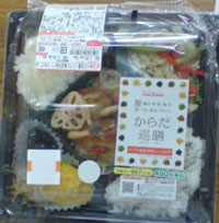 コンビニ弁当は体に悪いって決めつけるのは早い?サークルKサンクスでは、漢方の考え方に基づいた食材使用でプチ薬膳っぽいお弁当シリーズが出たんだって♪♪その名も‘THINK BODY からだ巡(めぐり)シリーズ’からだ巡茶でおなじみのコカコーラと薬日本堂の共同開発年末年始の暴飲暴食で疲れた体によさそう♪さて、おいしいのかな~~??興味津々で~す★。、::。.::・'゜☆。.::・'゜★。、::。.::・'゜ってのが先日の日記だったのですが~~~早速1/8の発売日に買いに行き、そのときは写真を撮るのを忘れちゃって、2回目に食べたのでパシャッタ(・。☆) カッ!なかなかのボリュームこれで490円なり~中身はこんな感じ~~~からだ巡膳(マグロ竜田辛味ソースかけ)ごま、クコ、松の実など、薬膳っぽい食材がいろいろ~(^^)お弁当は小さく区分けされててお料理もいろいろ♪普通ならキャベツが入ってそうなちょっとしたスペースにもレンコンフライだったり、ゴボウサラダだったり、ちょいと手間あり♪これなら一日30品目ってのも軽くクリア?ごはんも発芽米やらごまやらヘルシーおいしかったよ~~~(#^.^#)でも、薬膳の割にはちょっと味付けが濃いめ。。。万人受けのため?今度はからだ巡むすびを買ってみようっと(^_^)V1/28までの限定発売です~~(^o^)/~~~