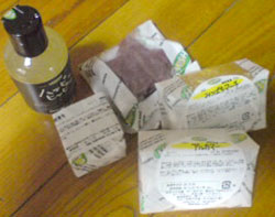 ええと。。。ぷち福袋はいくつか購入していますが~~今回の福袋はラッシュのぷち福袋です(^^)★ソープ&シャワージェルベストセラーセット★まぁ2000円というお値段だし、こんなもんでしょうか?でも、ベストセラーだけあって、とってもいい感じ♪■ハッピーヒッピーシャワージェルピンクグレープフルーツの果汁がベタつくお肌をさっぱりウォッシュ!■みつばちマーチ石けんミツロウシートをトッピング!はちみつがお肌を潤す!■アルカマー石けんスイカズラエキスやジャスミンオイル入り!クリーミーな泡がやさしくお肌を包む!■ポリッジで朝食を石けんオートミールとフレッシュオレンジジュースでなめらかなお肌に!■OH!マイフェアリー星型石けんキャンディみたいな甘い香り!以上の5点セットでした~~どれもこれもうっとり♪お菓子のような香りです(^з^)-☆・・・と、まぁ私の正月&誕生日月間、ぷち贅沢な日々の締めくくりでした~~今日から至福のバスタイムを`*:;,.★ ~☆・:.,;*