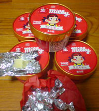久しぶりや~~~ん\(*´∇`*)/生ミルキー♪5箱セットが当たりました♪とろけるよ~ん要するに、生キャラメルのミルキー版なのね。。。これだけあれば、ケンカにならない。。。かな。。。(^.^;