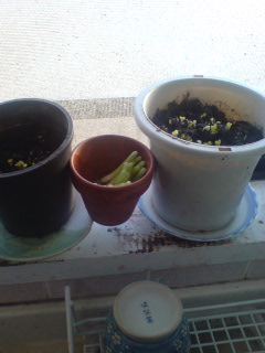窓際菜園始めました(^o^) 今のところ、ネギやらキャベツ、ベビーリーフ♪ ネギとキャベツは使ったあとの芯を植えただけ~ベビーリーフはタネを以前に買ったもの~ ベビーリーフは庭に蒔いてみたけど、ついついお手入れサボって、気づけば虫食いだらけ^^; んで、キッチンの窓際なら大丈夫というわけです~ なんかベビーリーフもスプラウト状態で終わりそうだけど~~