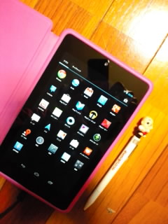 買っちゃった~~~o(^o^)oNexus7!!!Googleが作ったタブレットです(^^)viPadミニをスルーして、こっちです~私にしちゃ、すんごい贅沢!ピンクのカバーを付けてみた♪
