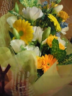 私の車を 中古車から中古車に買い替えました♪旦那が米子まで買いに行ったんですが~思わぬおみやげが!!こんなりっぱな花束\(^_^)/あ!旦那ではなく、中古車屋さんからのプレゼントです~~うれしいな(*^^*)