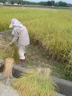 隅っこは機械が入らないから、先に刈っておくちゅーワケですなとにかくまぁカマ自体、使ったことがないので大変です