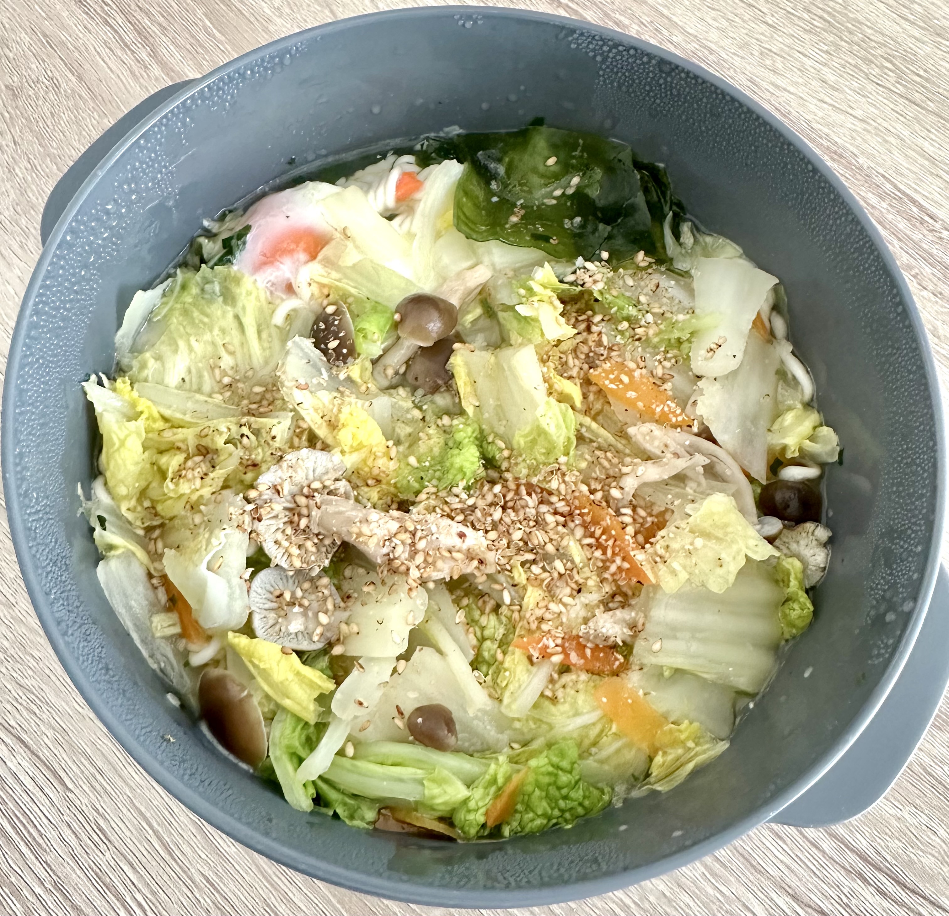 朝はフルグラ+ヨーグルト、昼は野菜ラーメン+チャーハン夜は鍋(鶏塩)+納豆