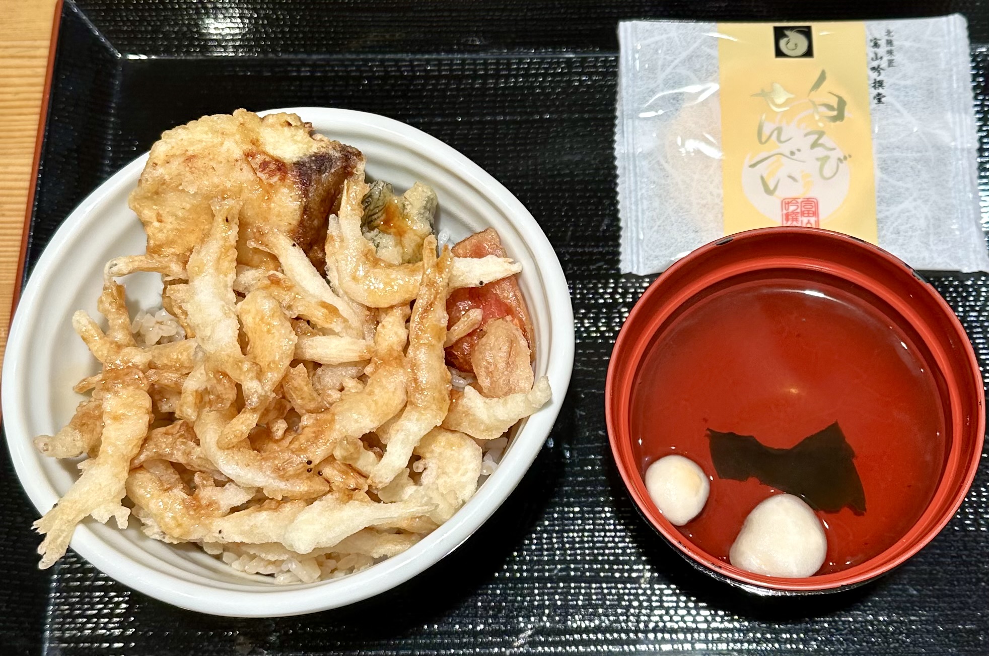 朝はきしめん、昼は白えびの天丼朝食おやつ夜もお寿司(寿司栄)