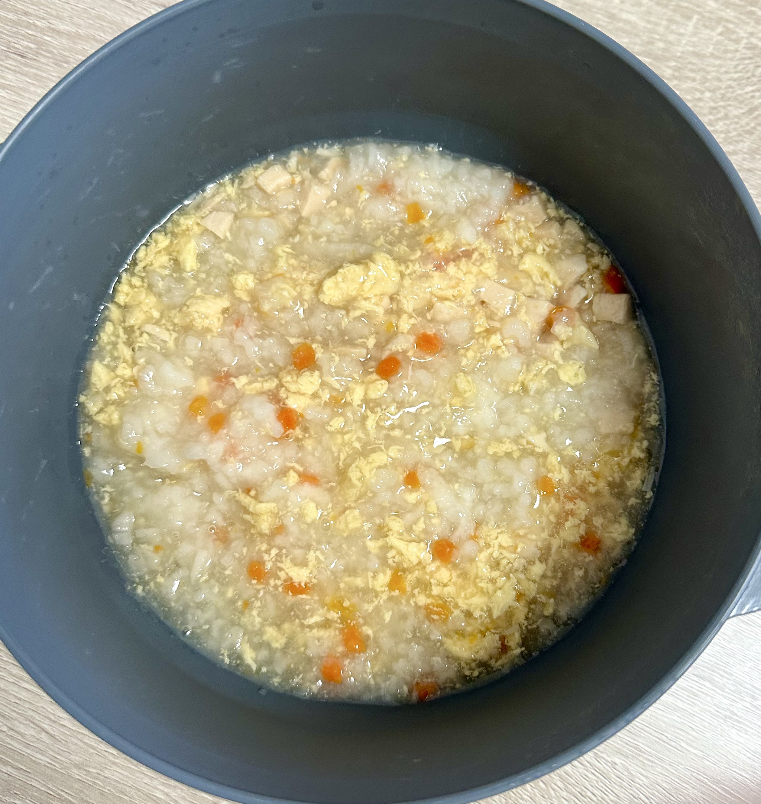朝は鶏と卵の雑炊昼は大根とじゃがいもの鶏そぼろあんかけ+白がゆ夜は煮込みハンバーグ+白がゆ