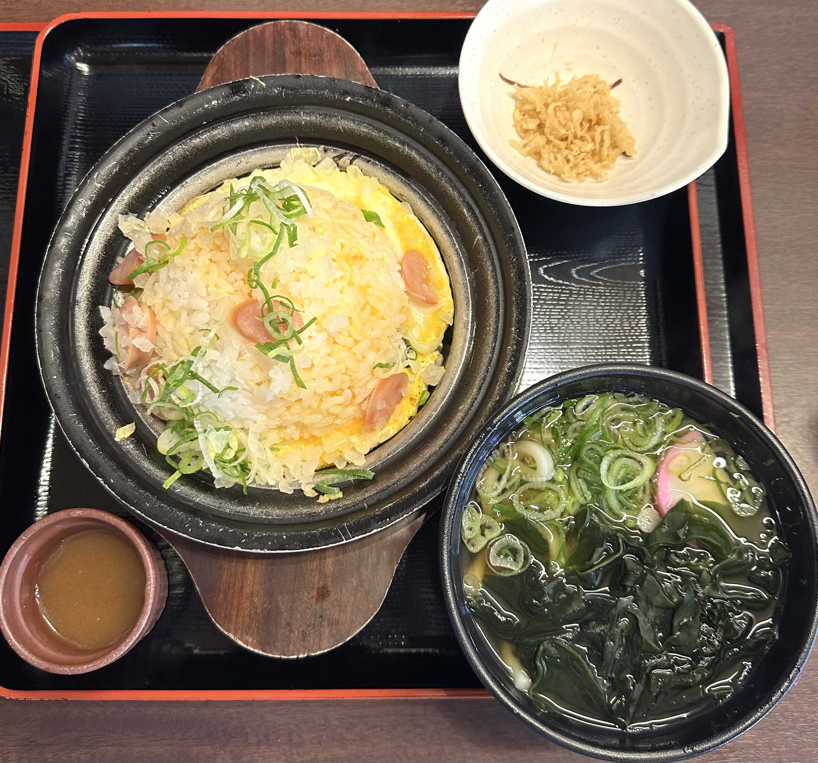 朝はフルグラ+ヨーグルト、昼は焼き飯+ミニうどん夜はスパゲティ(あさり和風)+納豆+ピザパン+サラダ