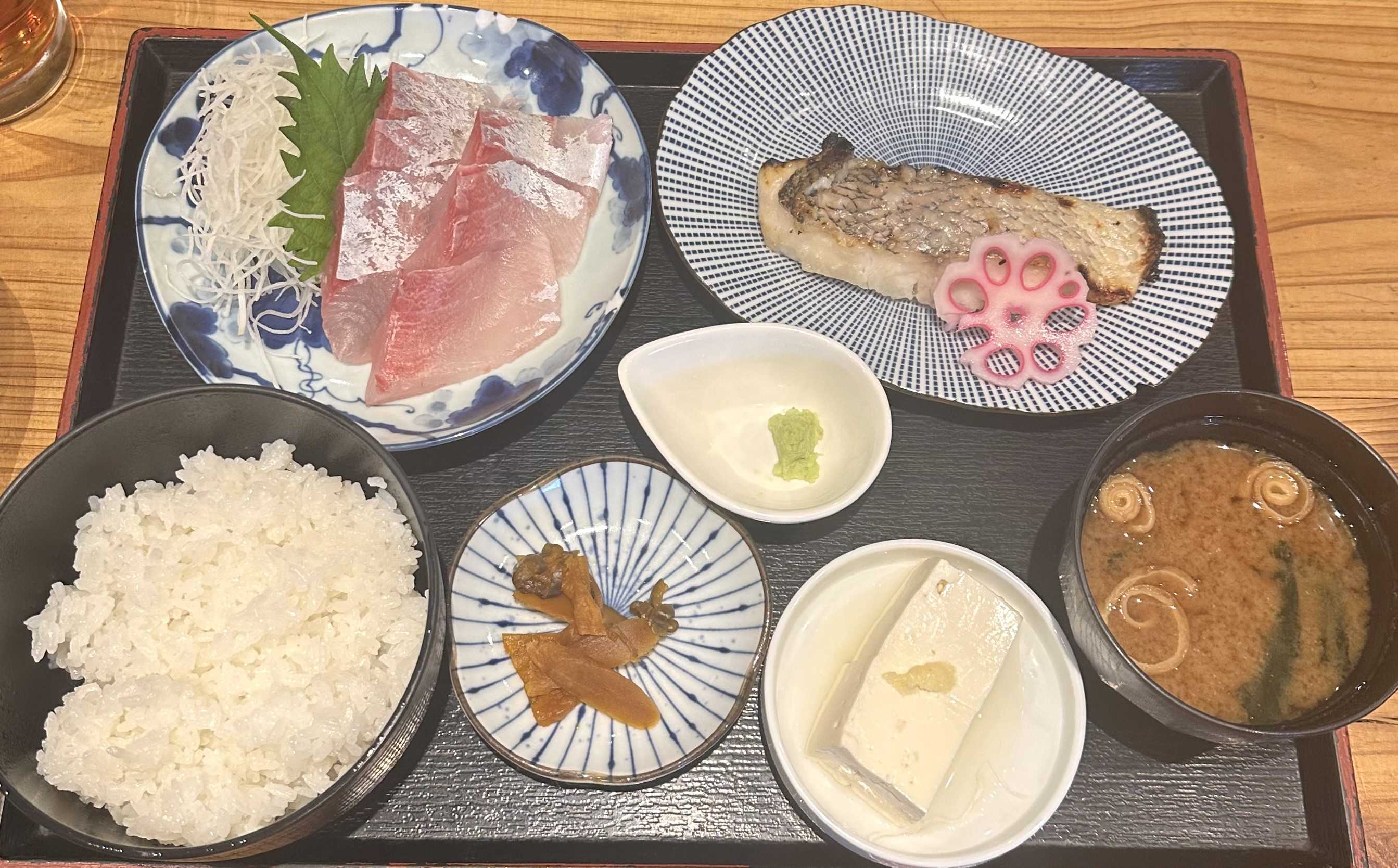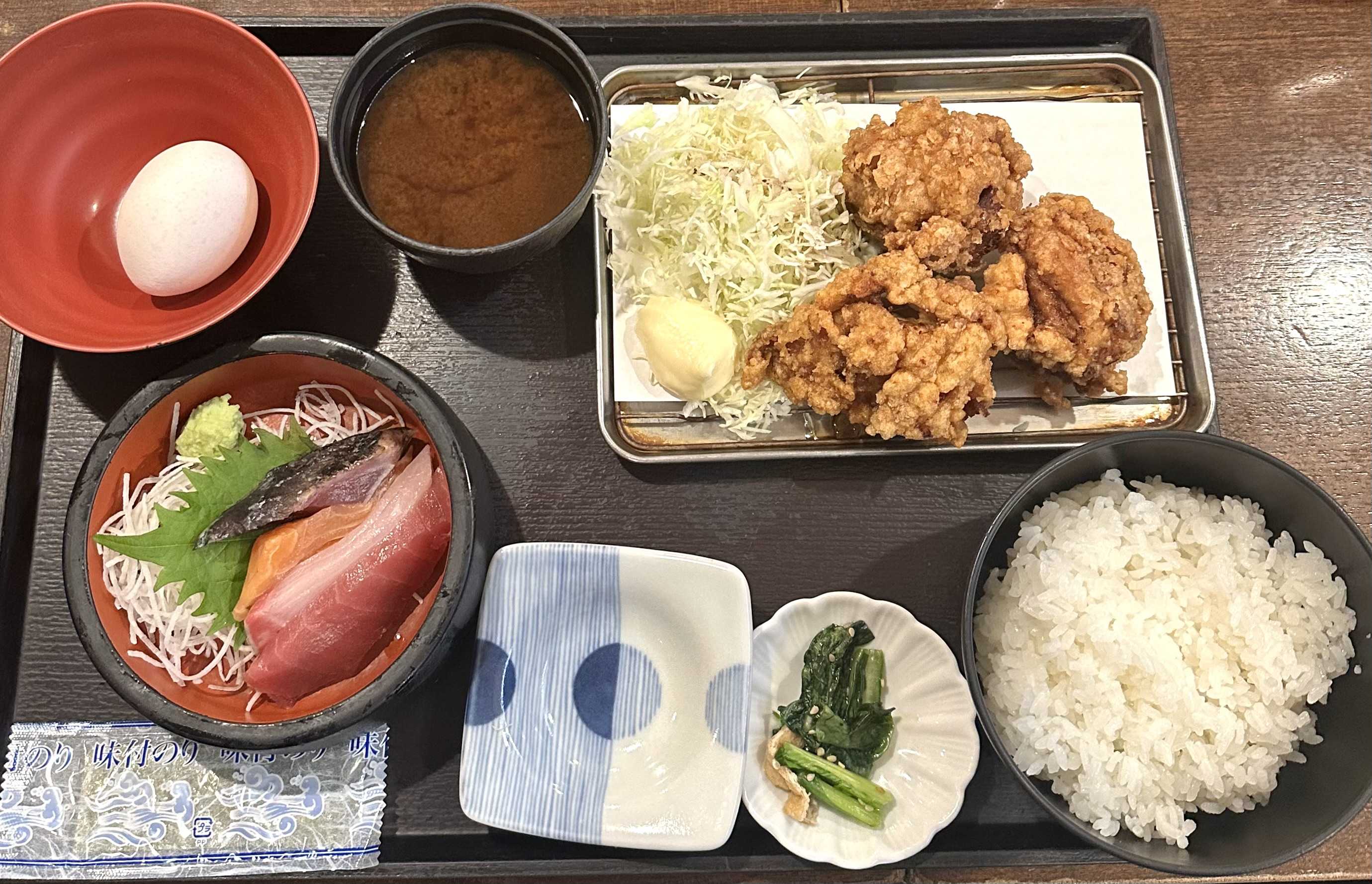 朝はフルグラ、昼はチキングリル定食夜は飲み会(さかなやま)